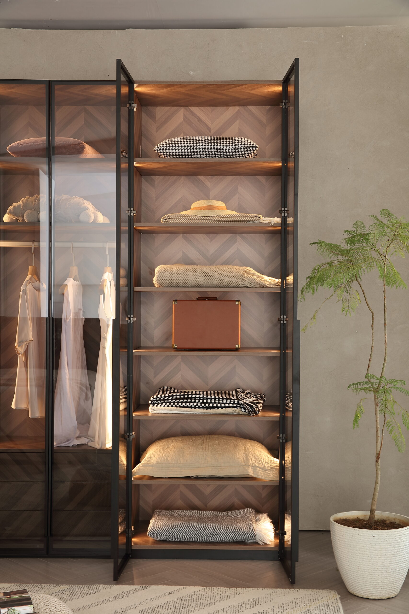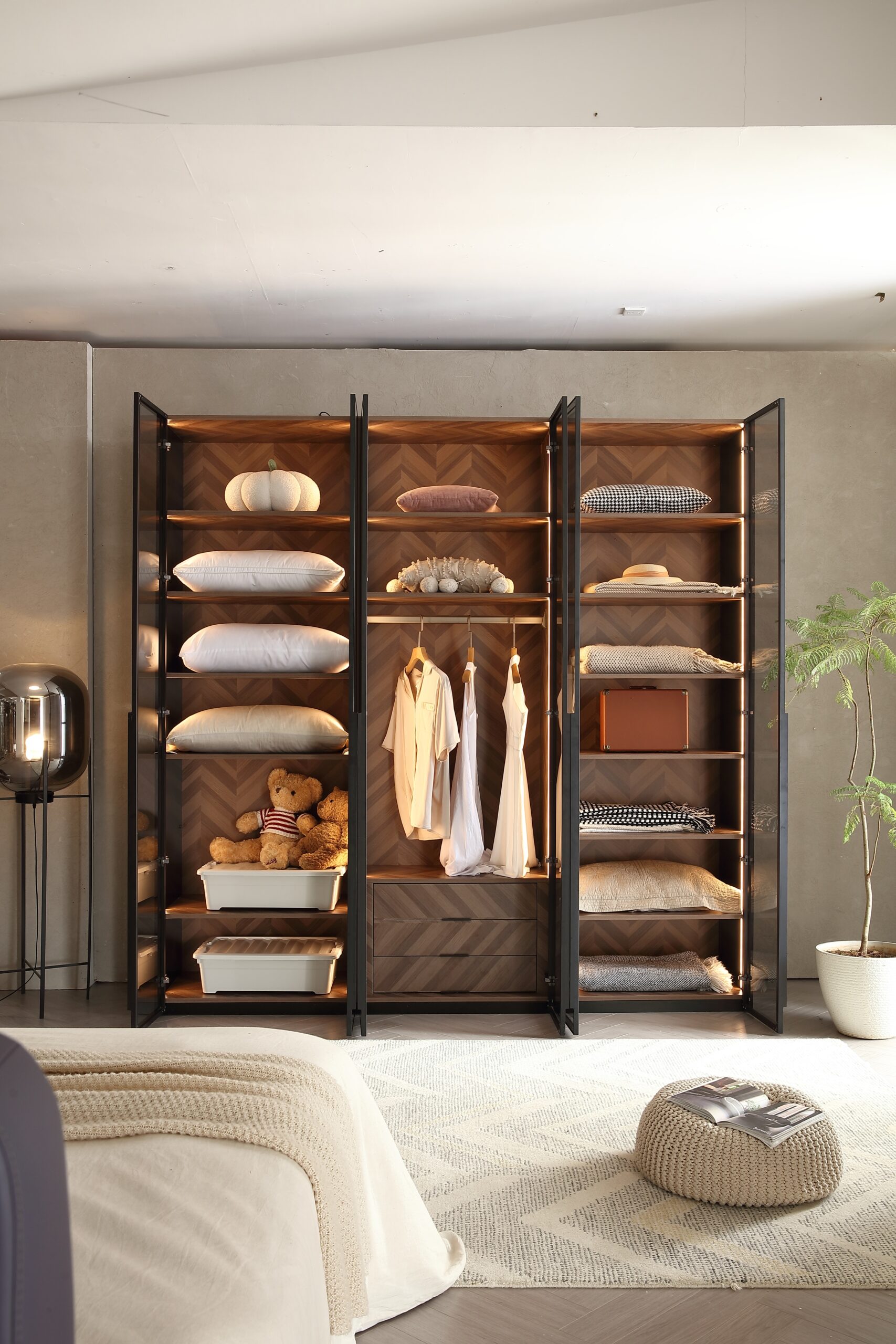 ✅ חלוקה פנימית חכמה – 14 מדפים ואזור תלייה