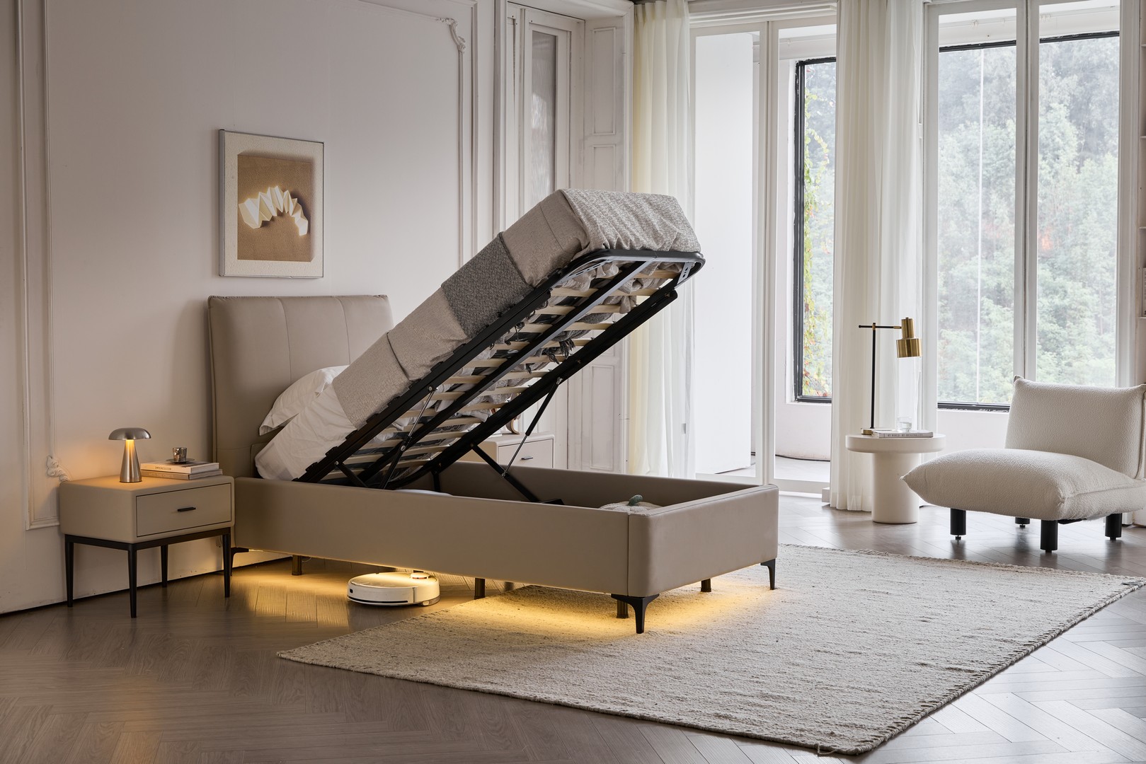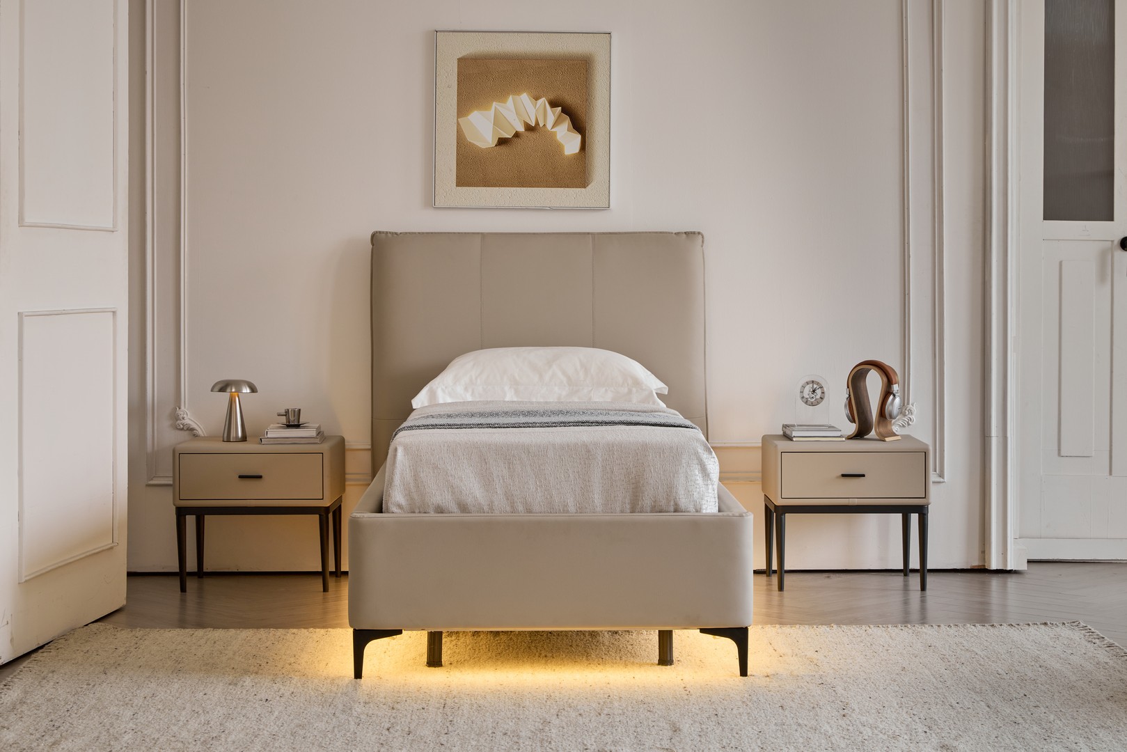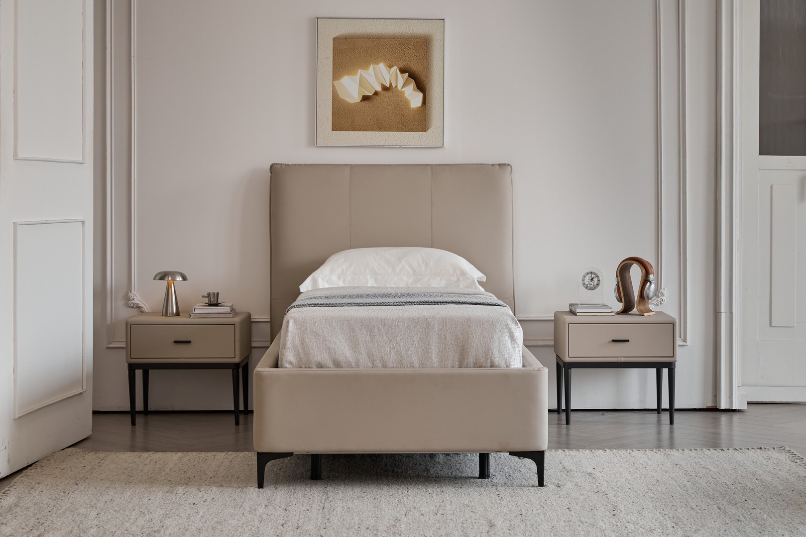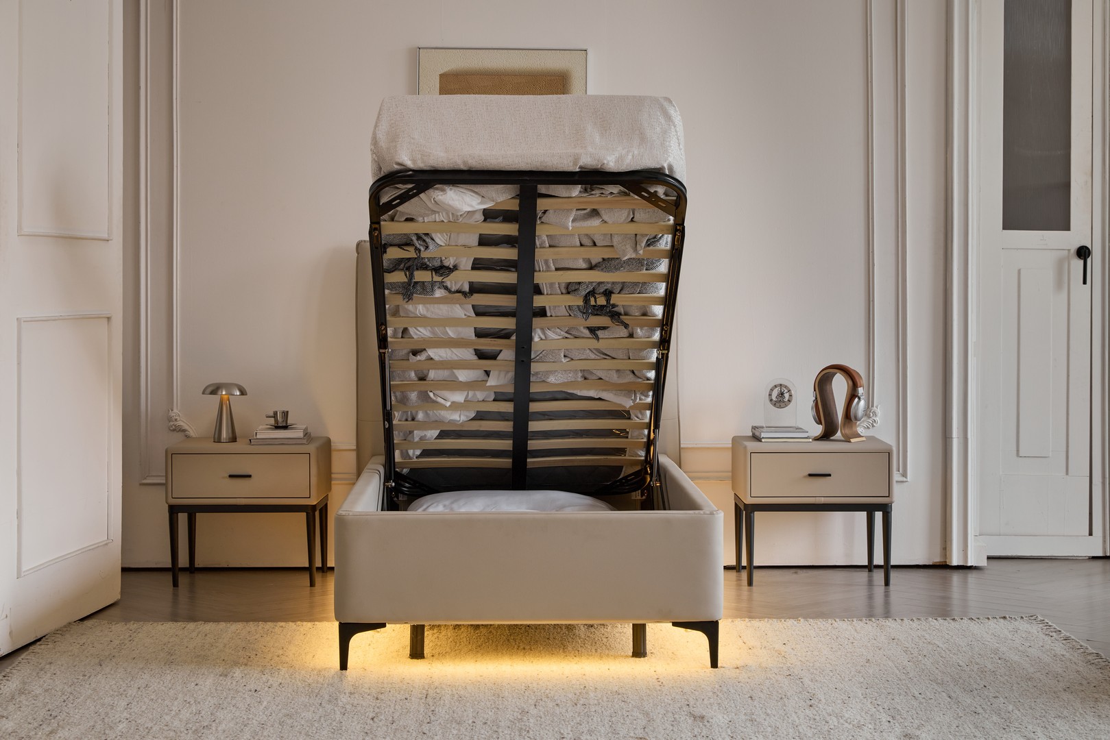 מיטת יחיד מעוצבת דגם ‘נהוראי‘ כולל ארגז מצעים גוון סהרה במקום 3290 ש”ח רק 1590 ש”ח כולל מזרן מתנה !!!