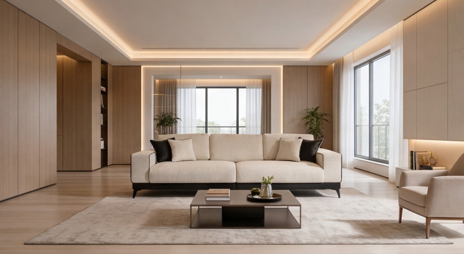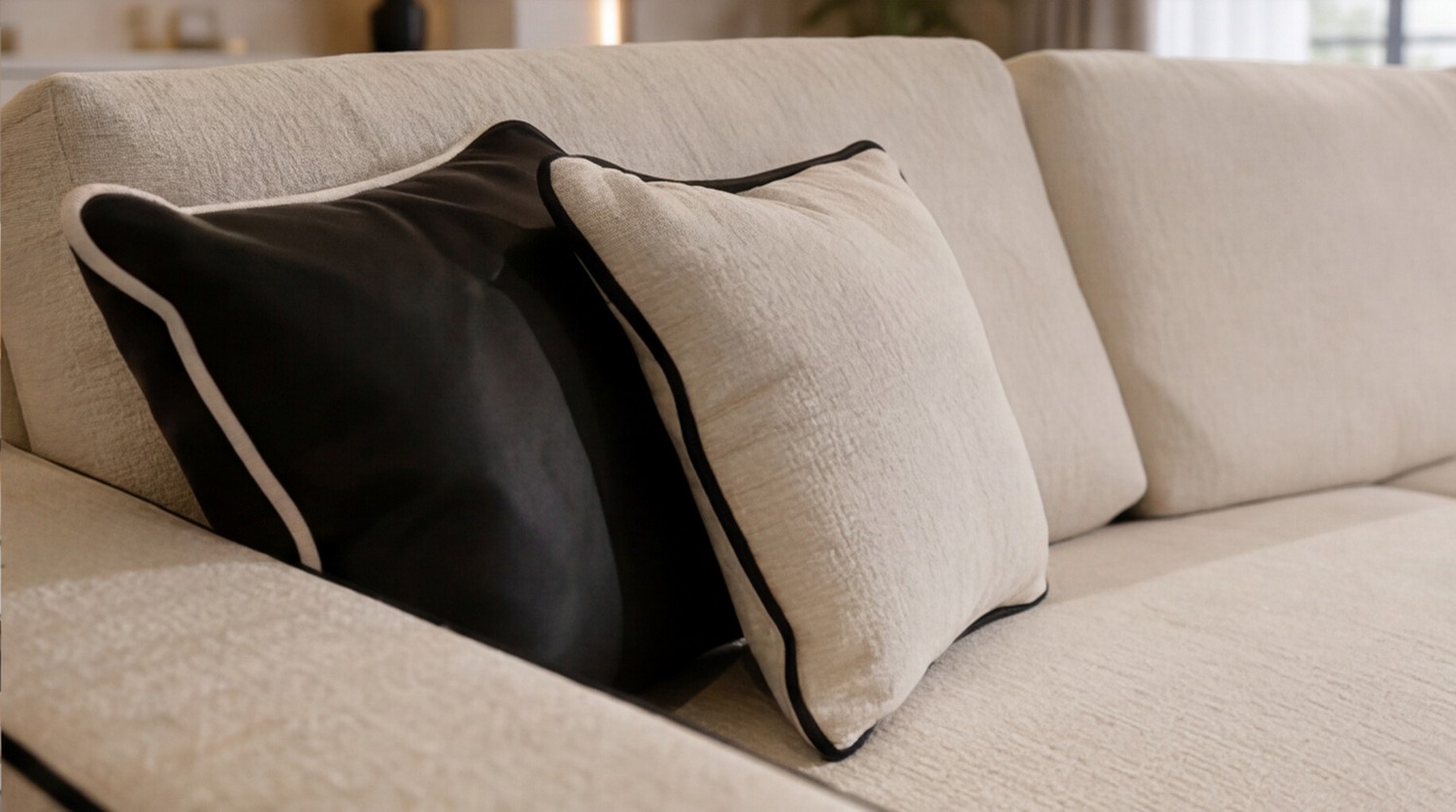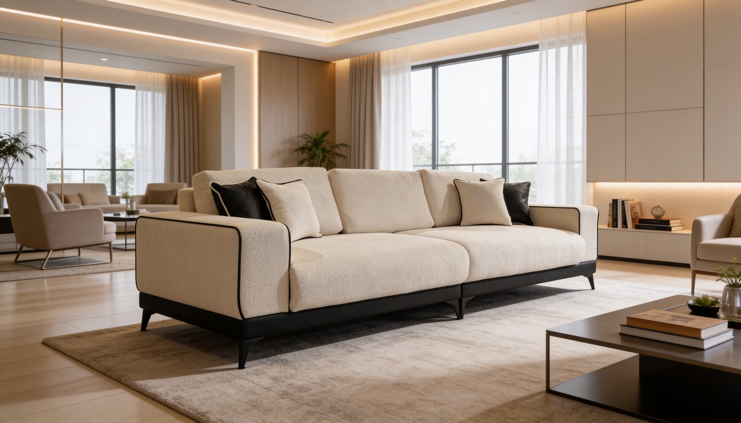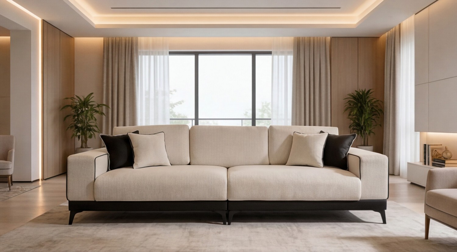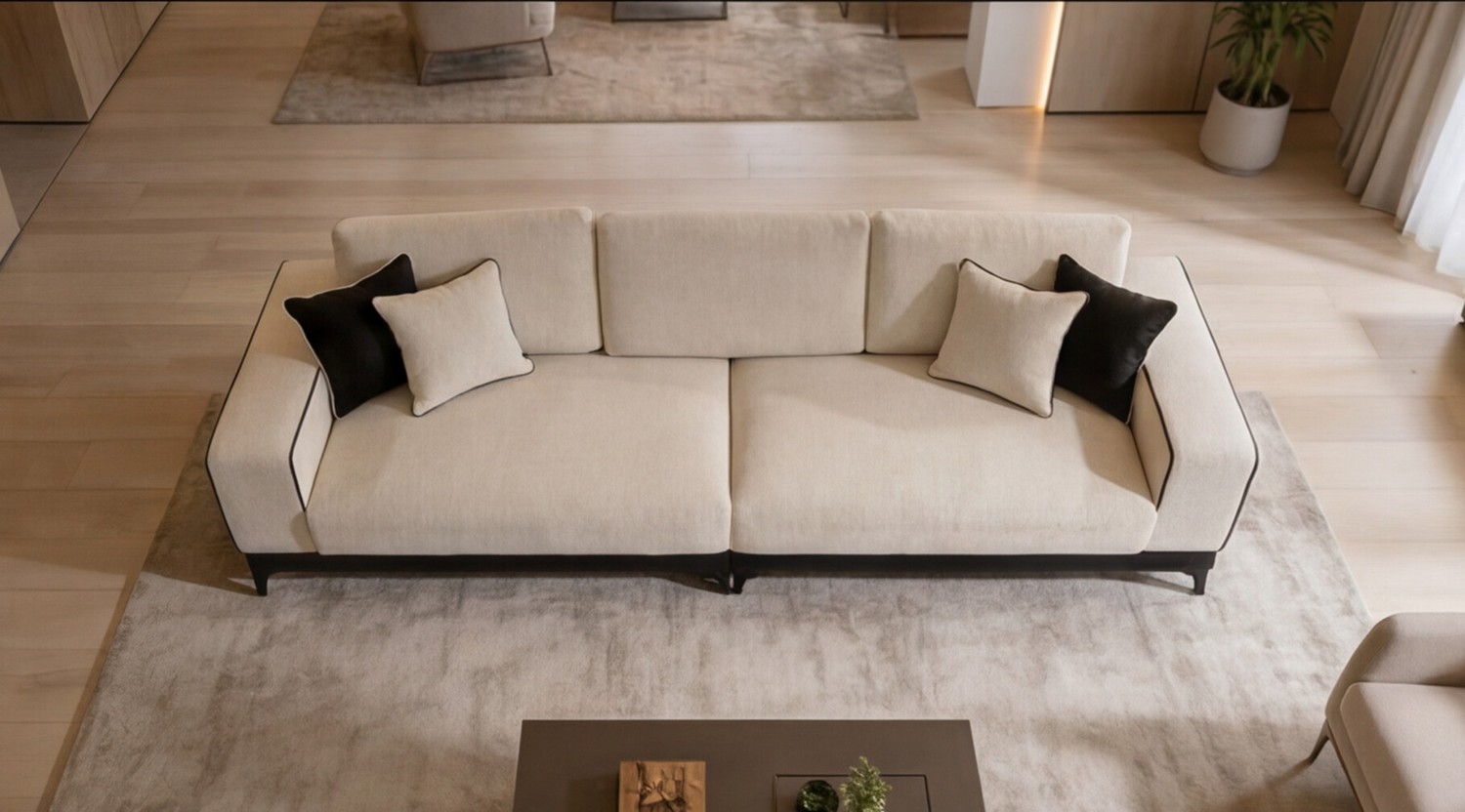 מבנה הסלון הרחב מאפשר ישיבה מרווחת ונוחה לכל בני המשפחה והאורחים, בעוד הגוון השמנתי משתלב בצורה מושלמת עם מגוון סגנונות עיצוב בבית.