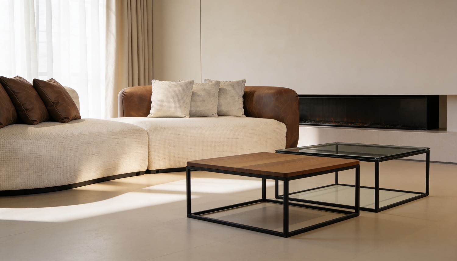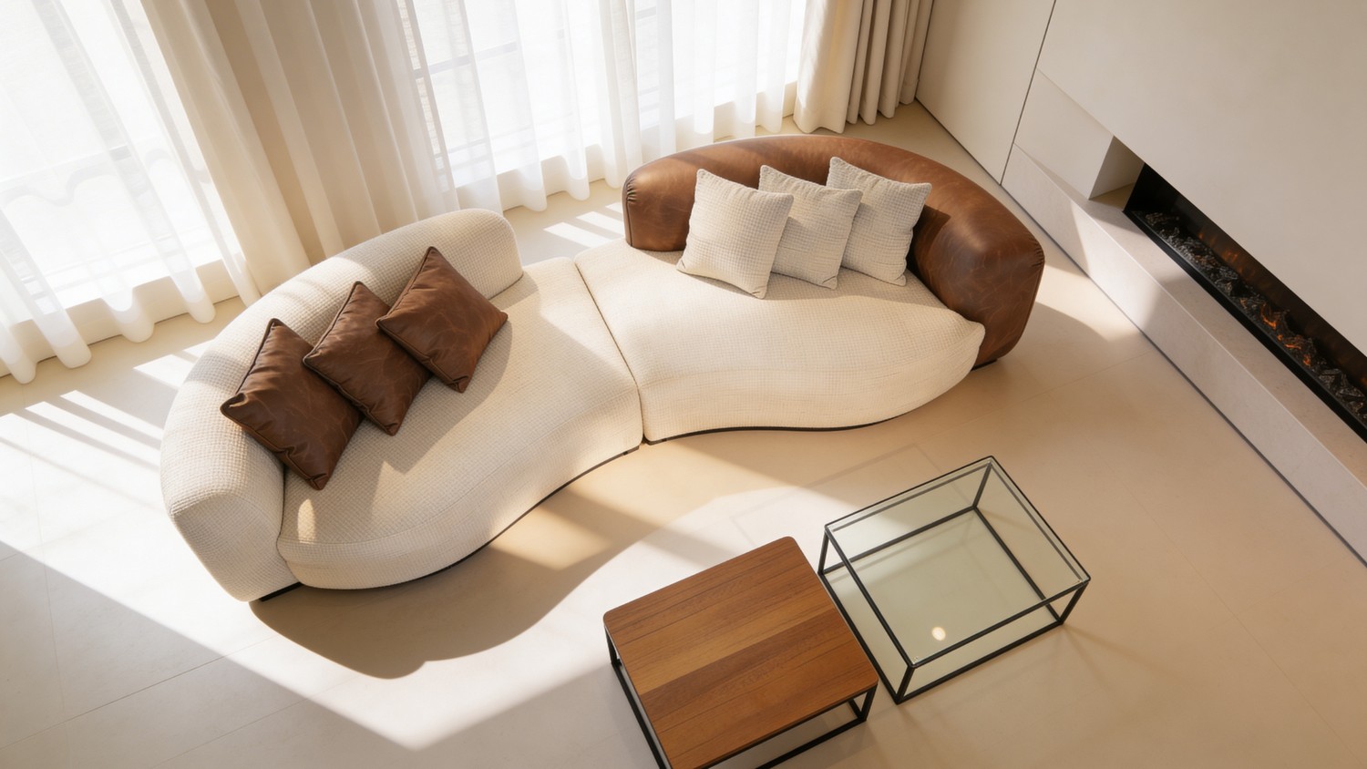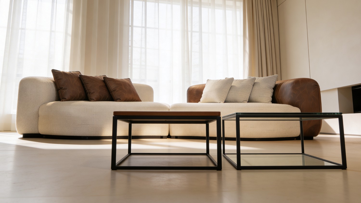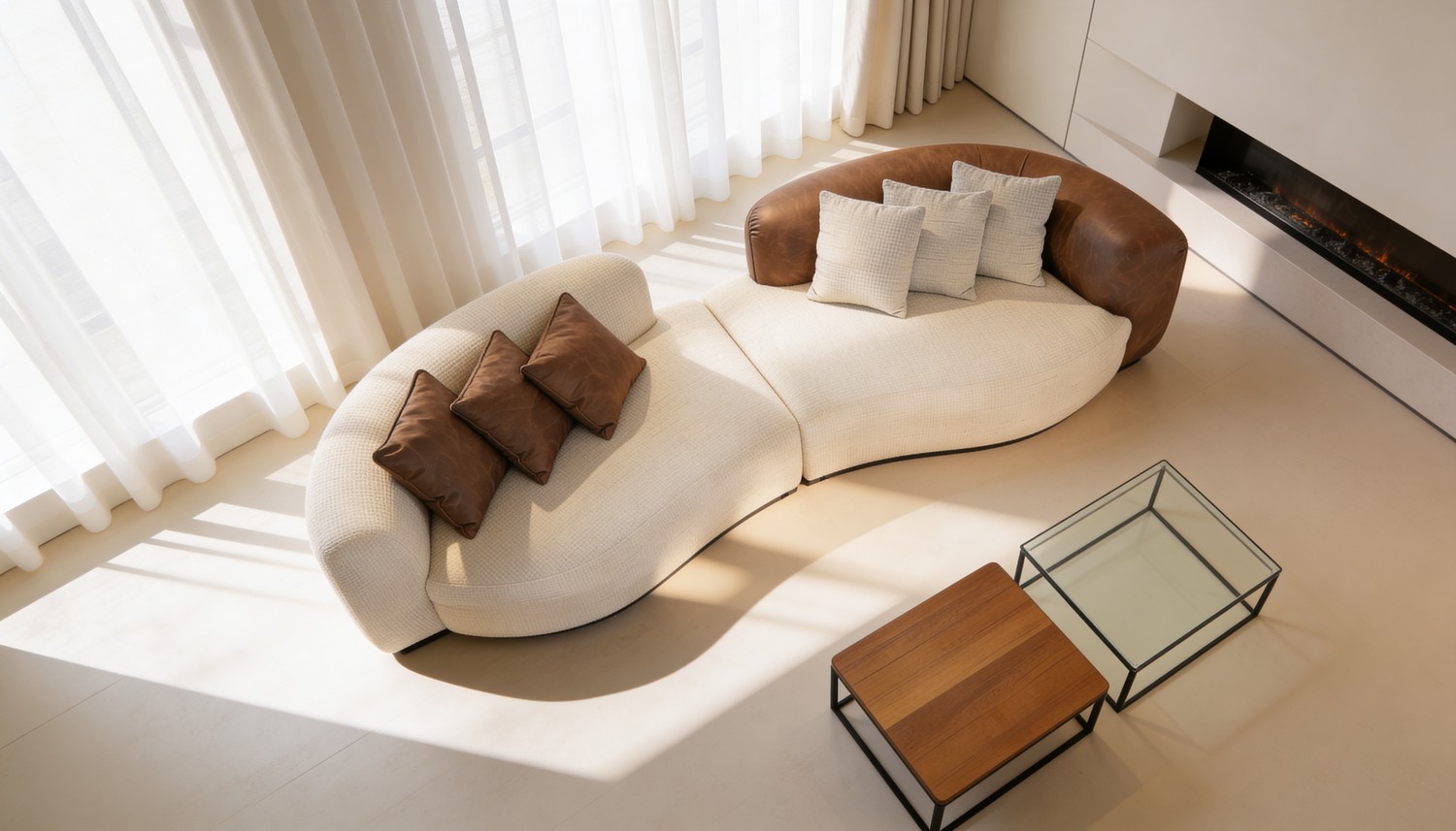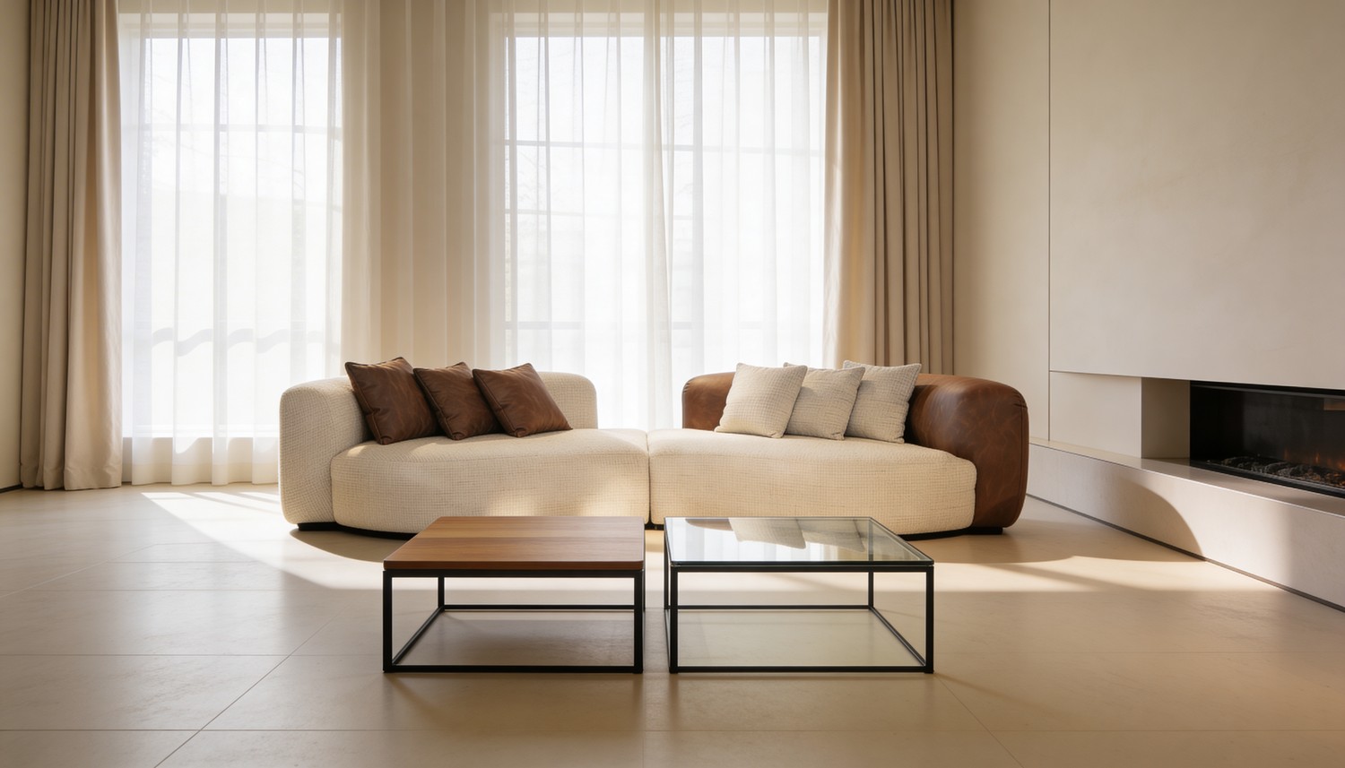 סלון דגם ולנסיה בעיצוב אלגנטי ומודרני, המשלב שילוב צבעים ייחודי של שמנת וחום המעניק מראה יוקרתי וחמים לחלל הסלון.