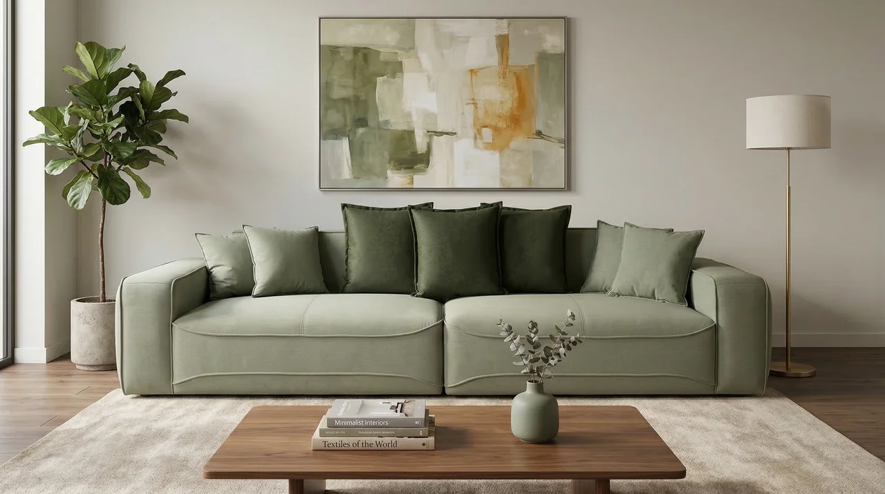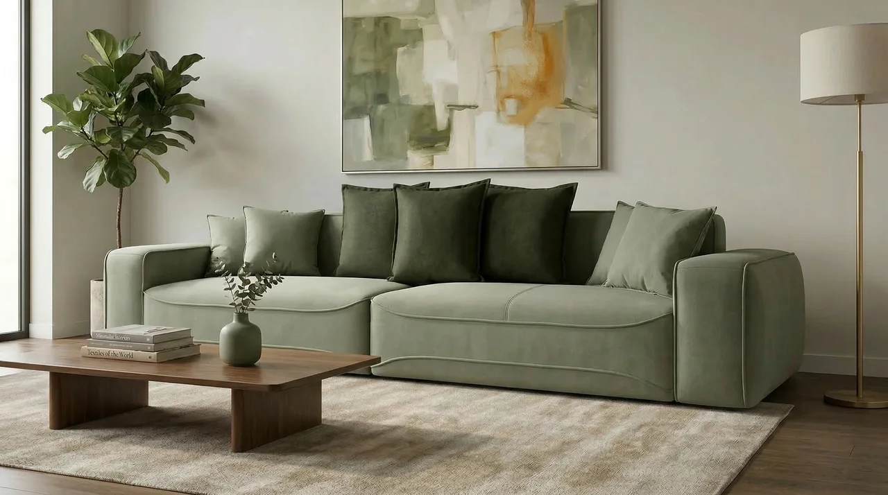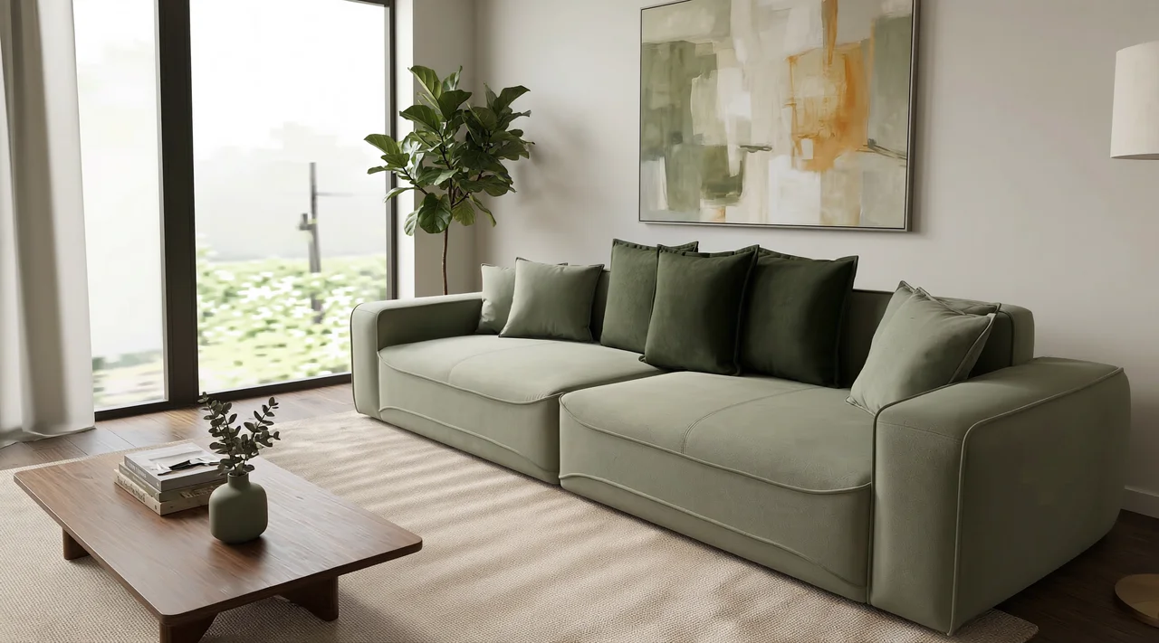 הגוון הירקרק מעניק לסלון מראה ייחודי ומרענן המשתלב בצורה מושלמת בעיצוב חלל מודרני או קלאסי, ומוסיף חמימות ואופי לחלל הסלון.