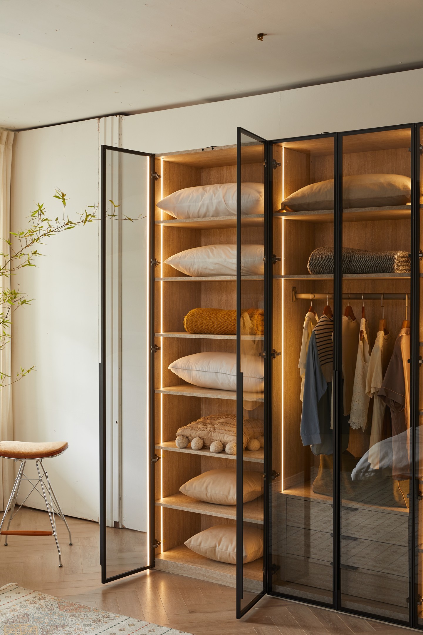 ✅ 6 דלתות זכוכית כהה עם מסגרת אלומיניום שחורה