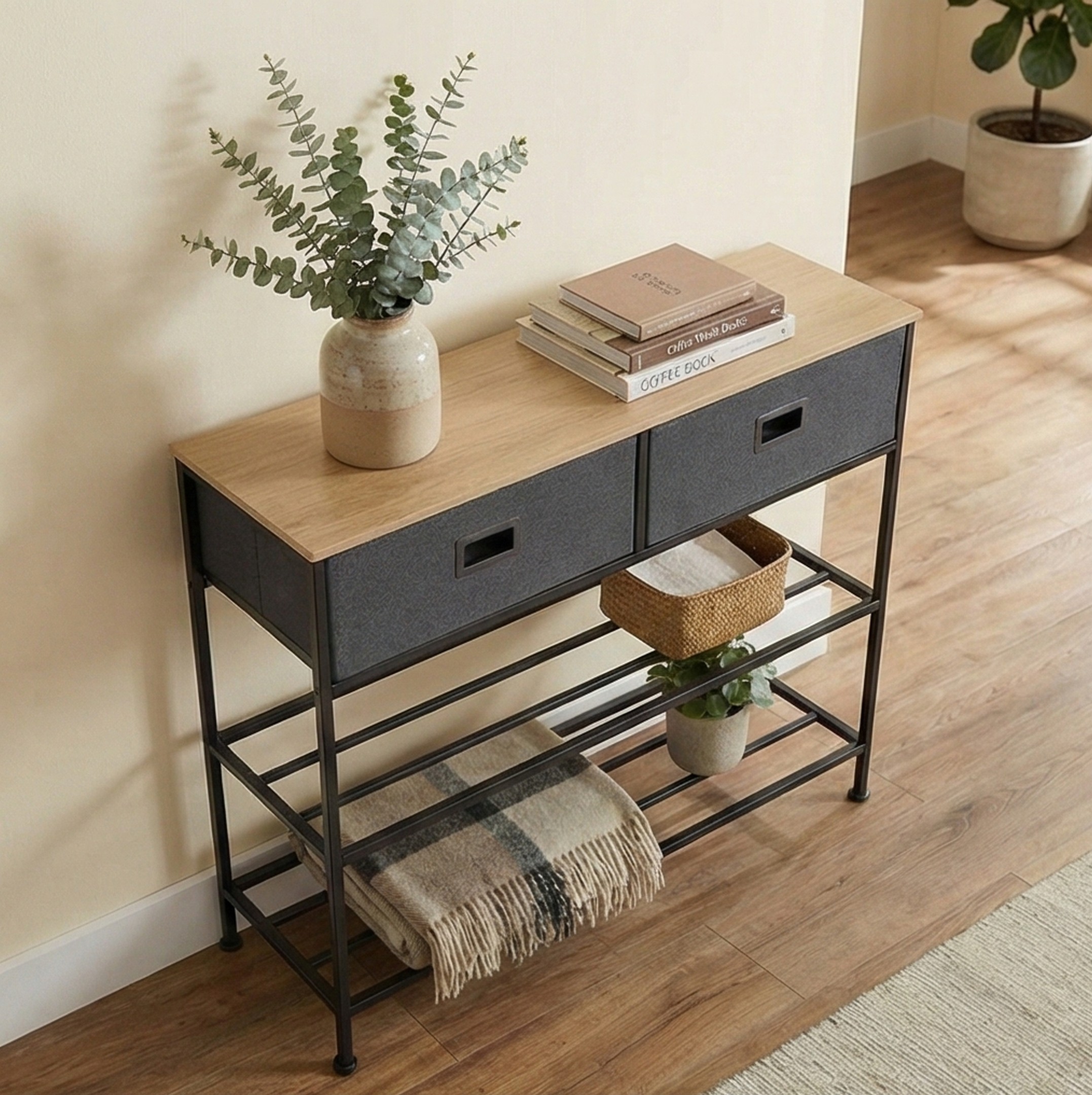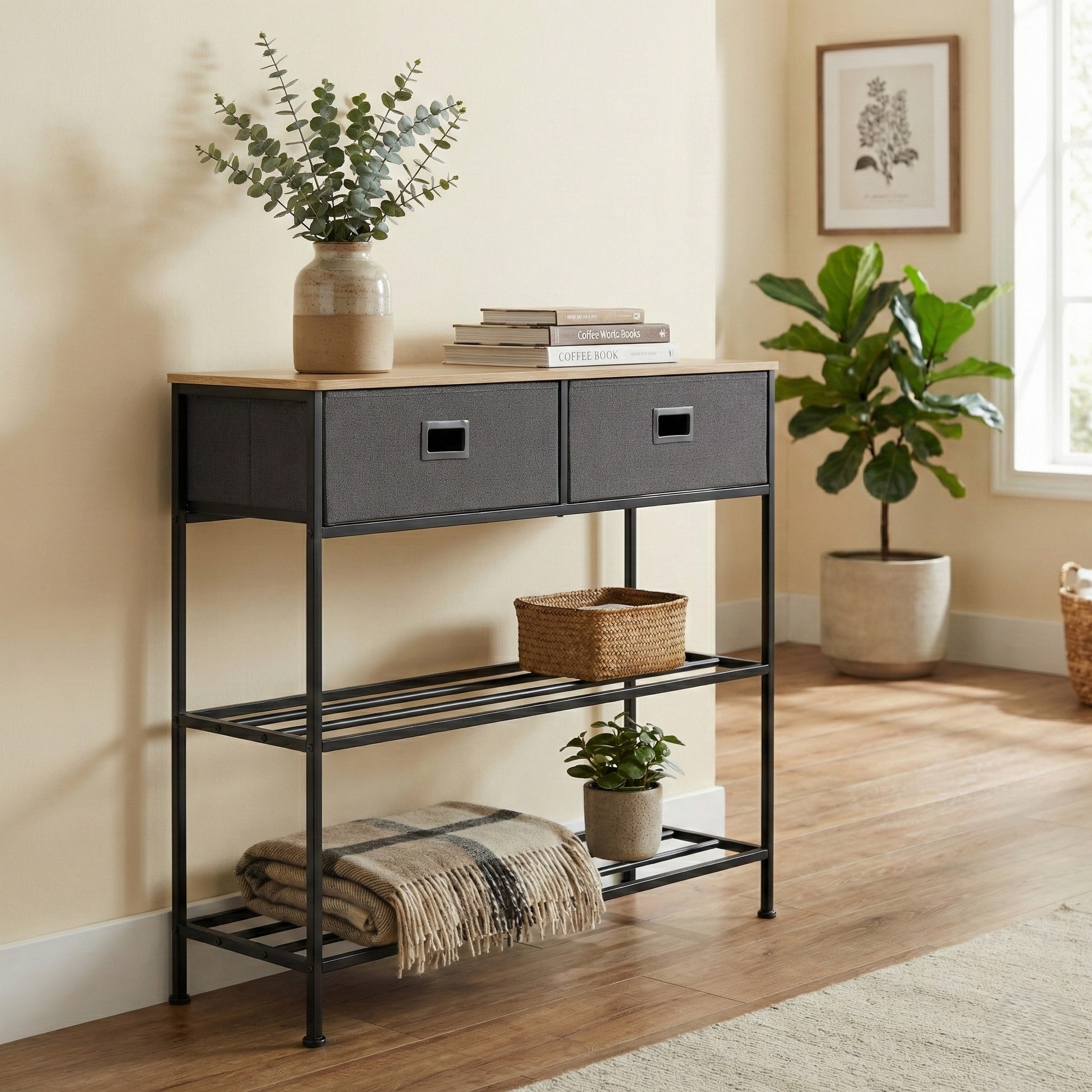 שילוב חכם של יחידה דקורטיבית, מגירות ומעמד נעליים ברהיט אחד קומפקטי