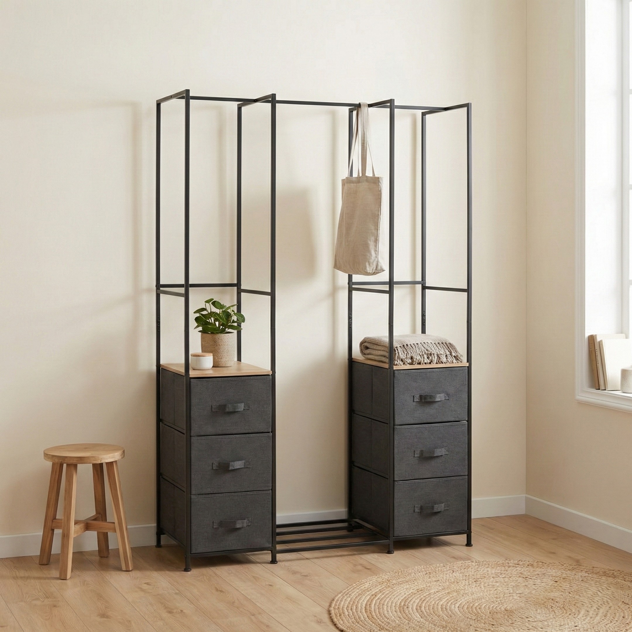 נהנים מכל העולמות עם מוט תלייה מרכזי נגיש, 6 מגירות אחסון עמוקות ומדפי צד להנחת אקססוריז ופריטים מעוצבים