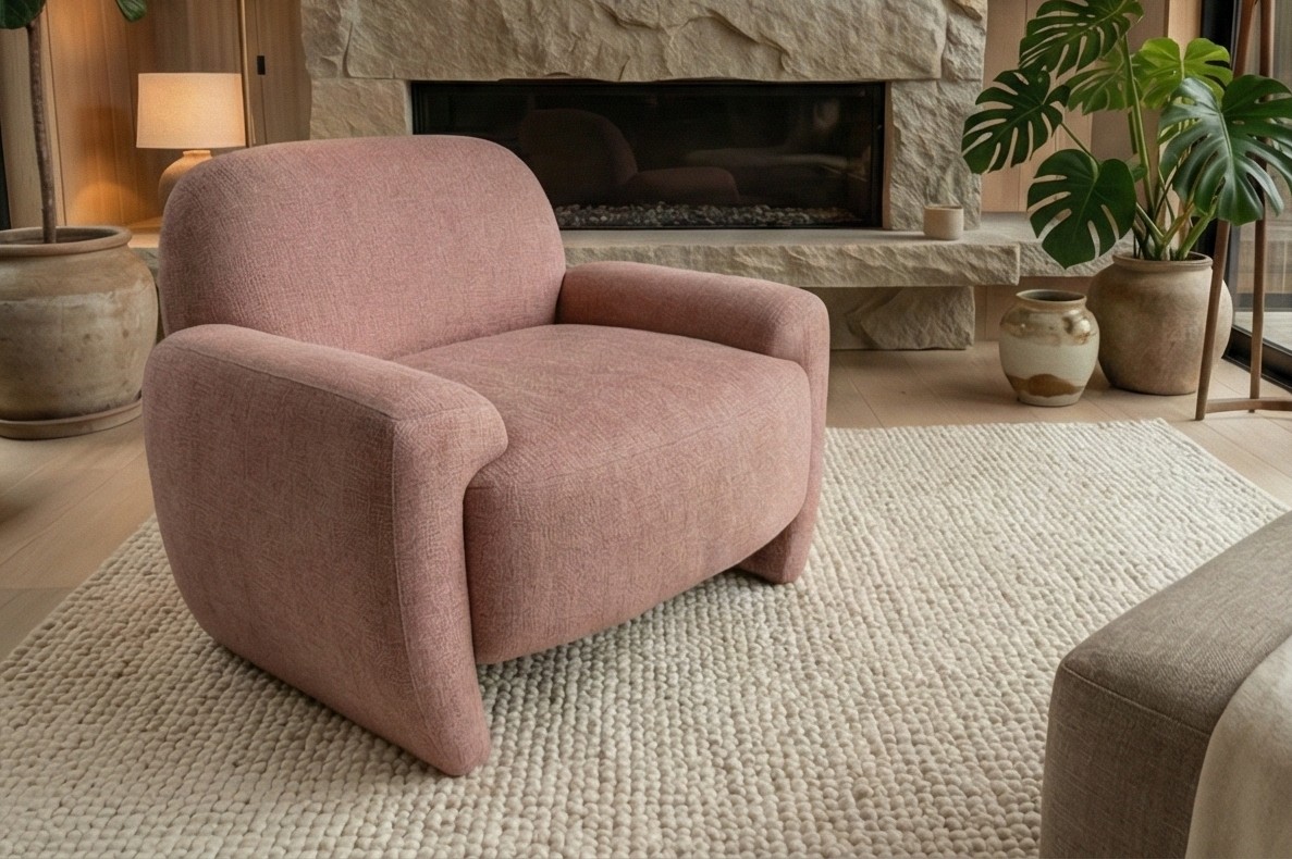 כורסא מעוצבת דגם ‘איתי‘ בגוון ורוד עתיק, במקום 3,290 ₪ רק ב – 2,290 ₪ !!