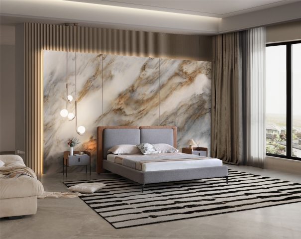 מיטה מעוצבת דגם ‘ונוס’ גוון אפור בשילוב חום : במקום 4890 ש”ח רק 2390 ש”ח כולל מזרן מתנה !!!