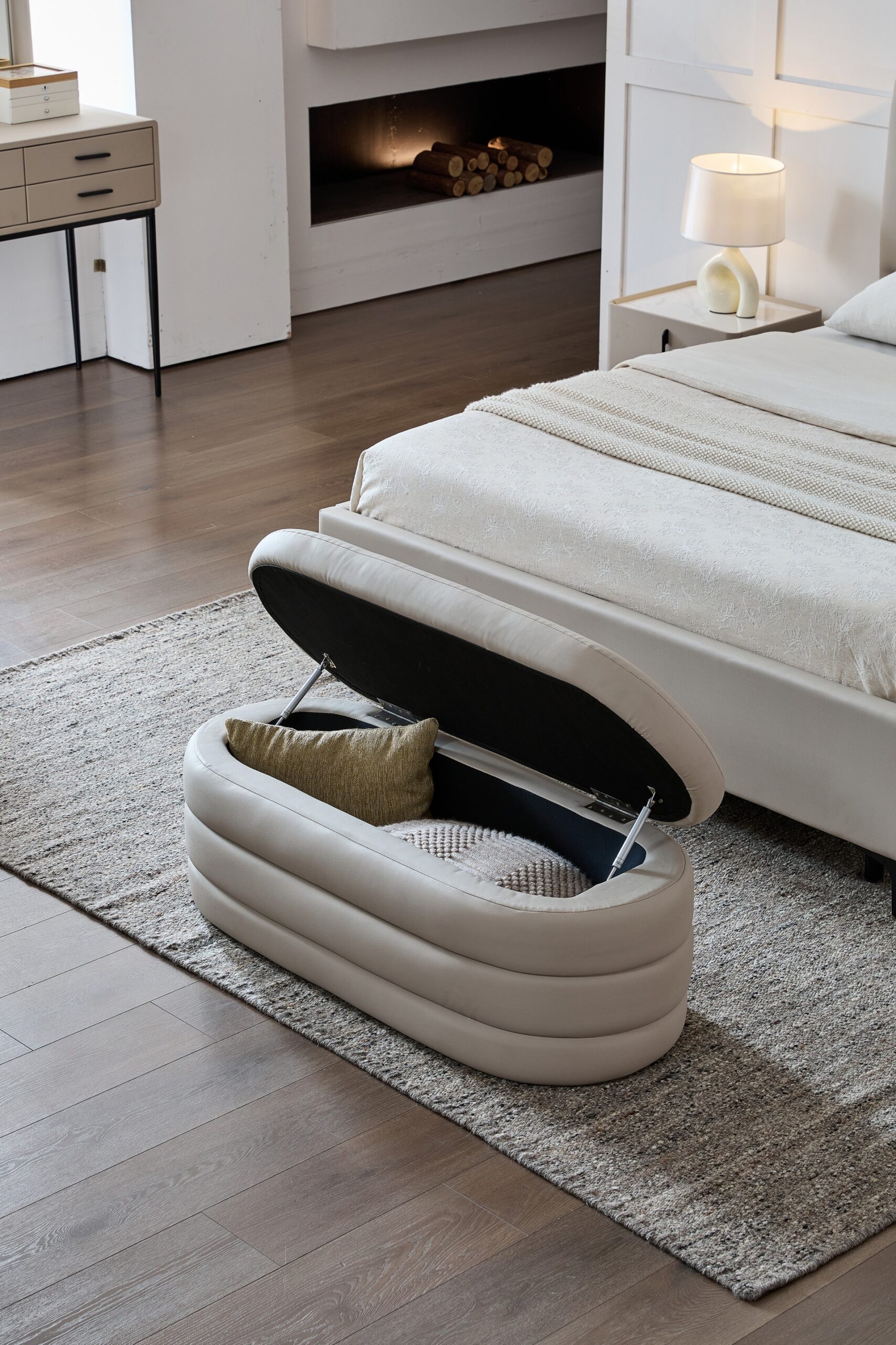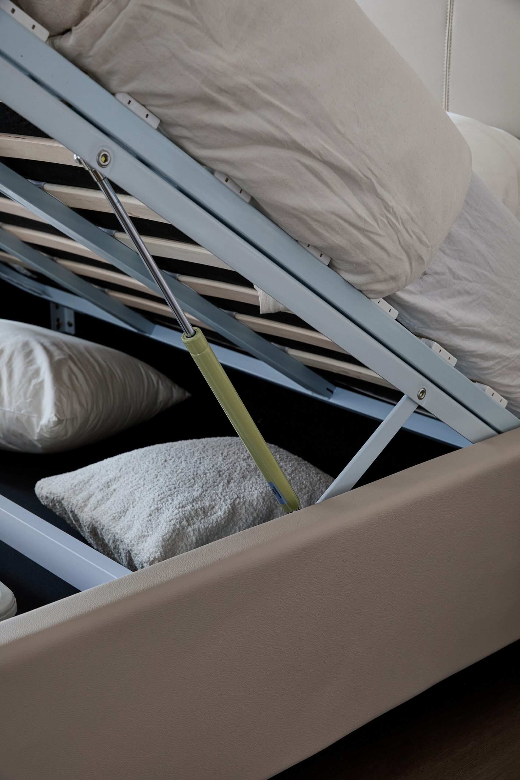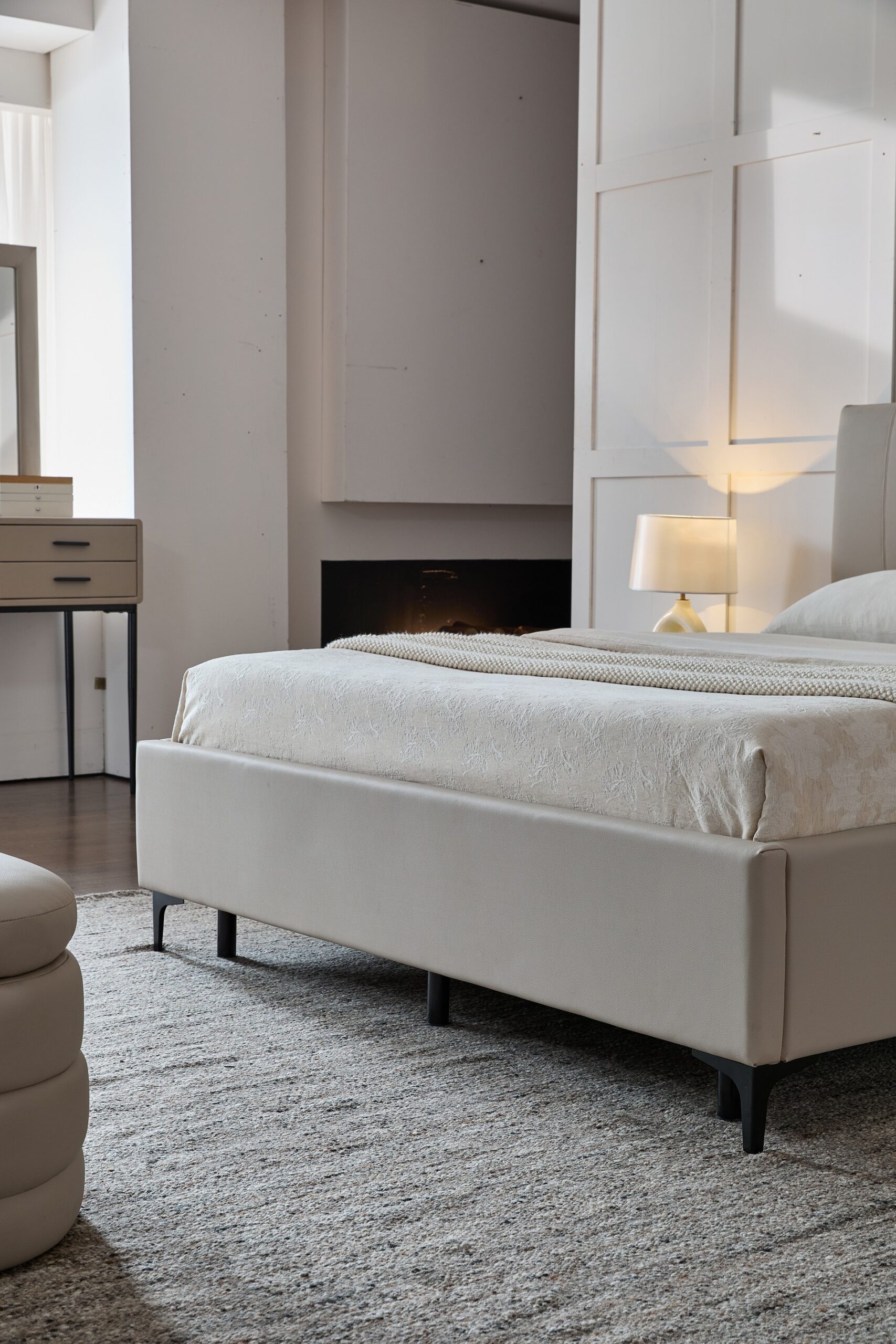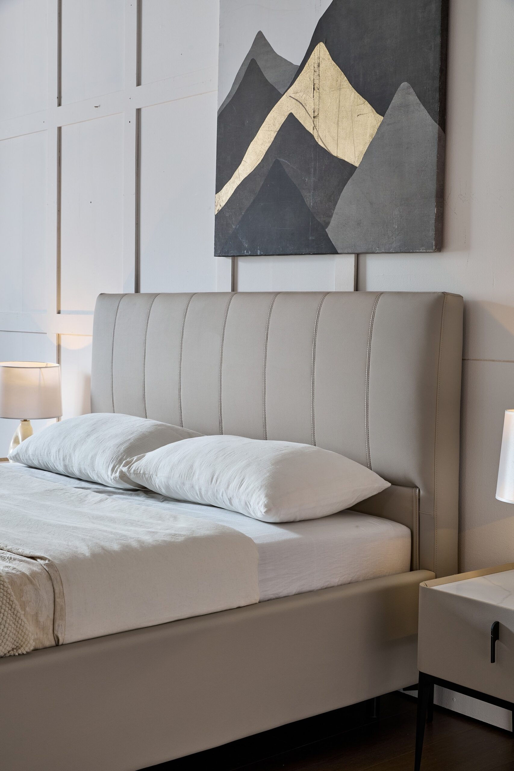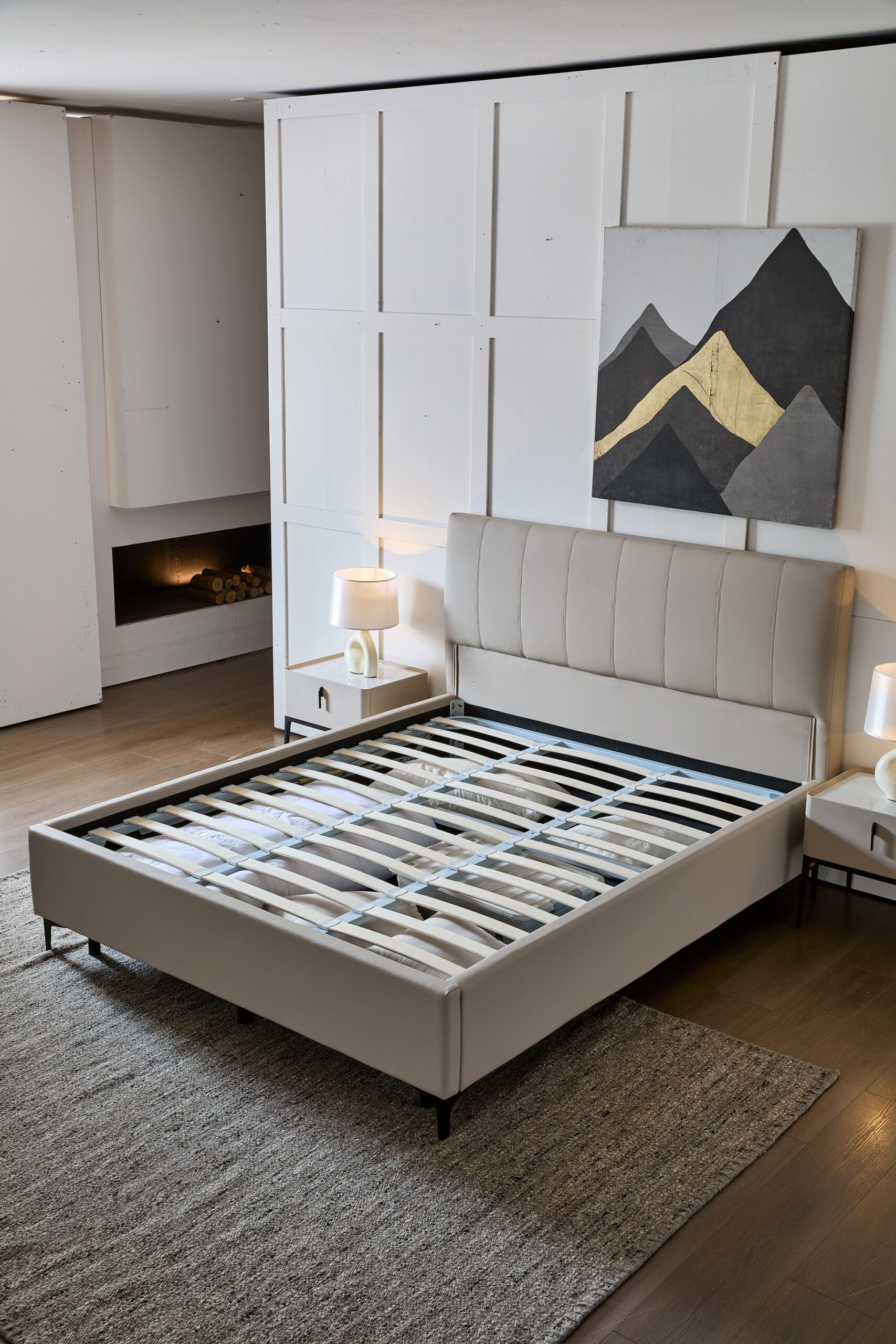 ✅ גוף המיטה משולב מעץ מלא וכולל רגליים אמצעיות לתמיכה מקסימלית, מרופד בדמוי עור טופ-לדר רחיץ, דוחה כתמים ונוזלים