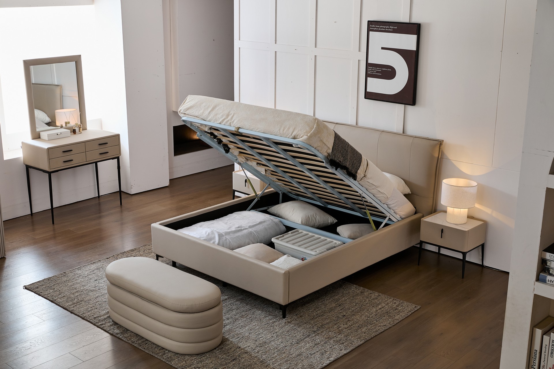 מיטה מעוצבת דגם ‘מדריד’ כולל ארגז מצעים גוון סהרה במקום 4790 ש”ח רק 2590 ש”ח כולל מזרן מתנה !!!