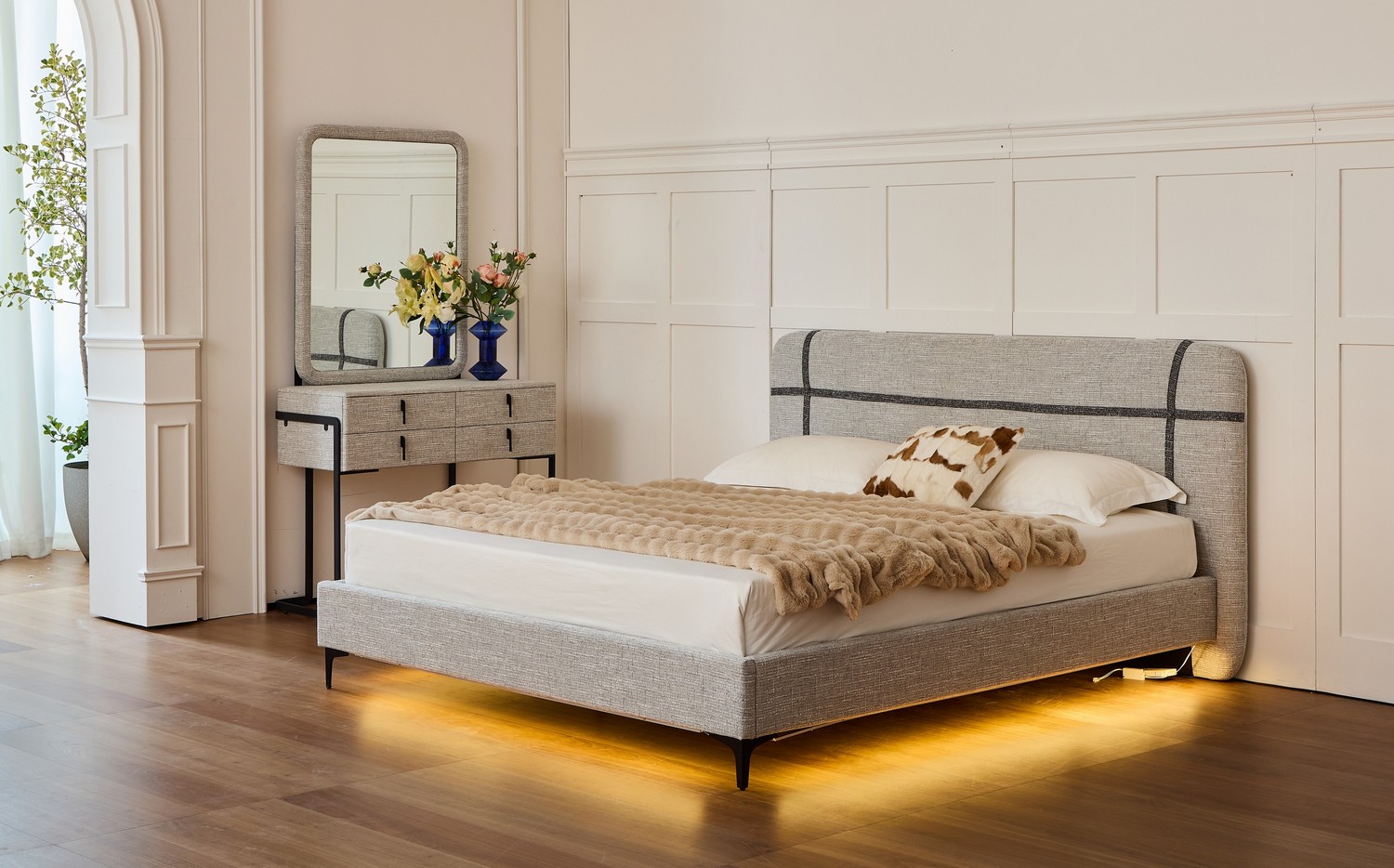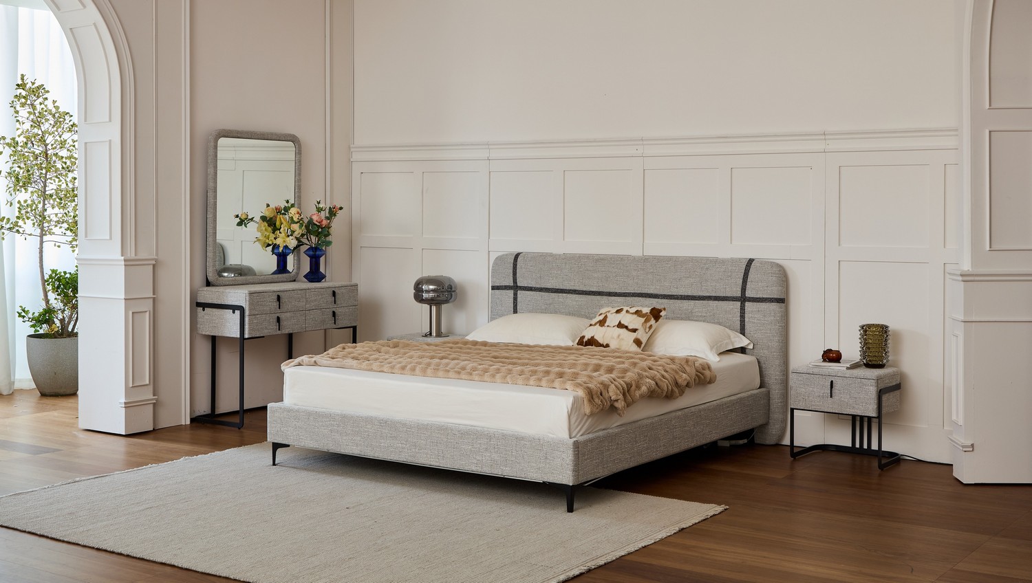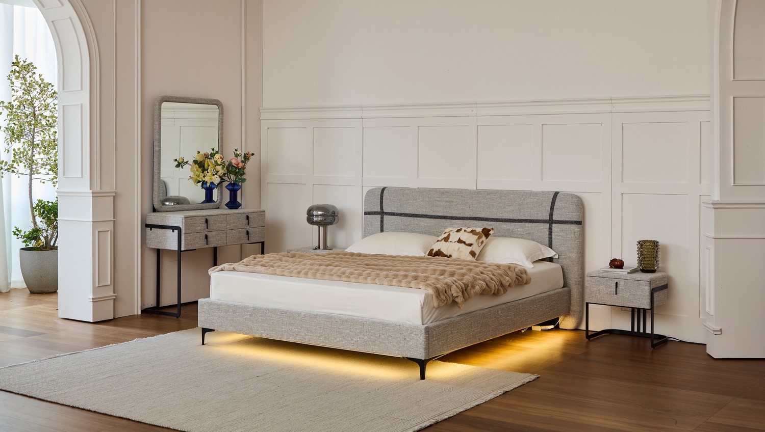 העיצוב הנקי והמודרני משתלב בצורה מושלמת בכל חדר שינה ומעניק מראה יוקרתי ומסודר.