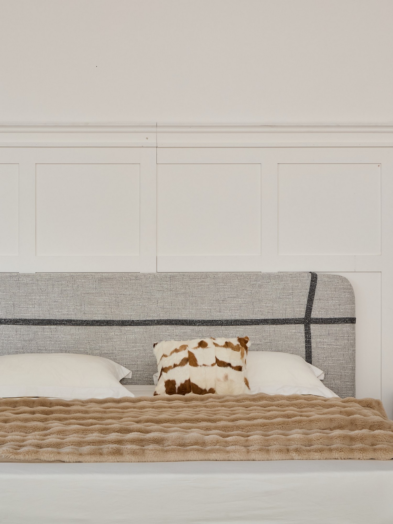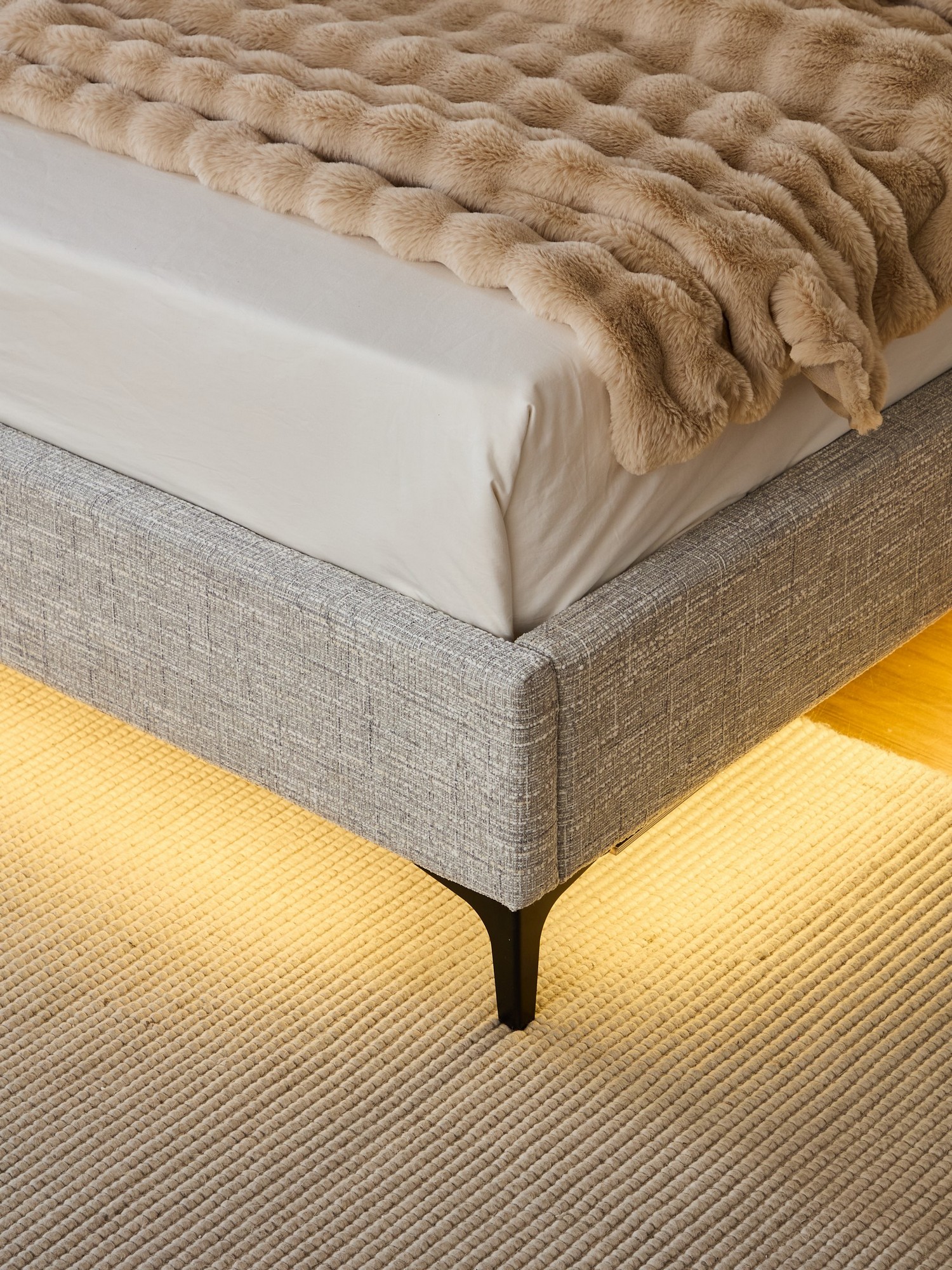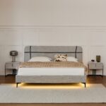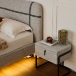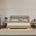 מיטה בגוון אפור אלגנטי, מרופדת בבד פאבריק איכותי, נעים למגע ועמיד לשימוש יומיומי.