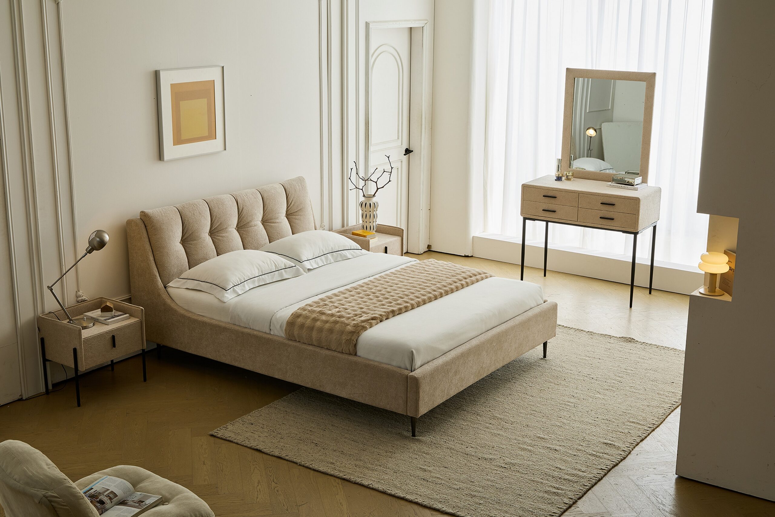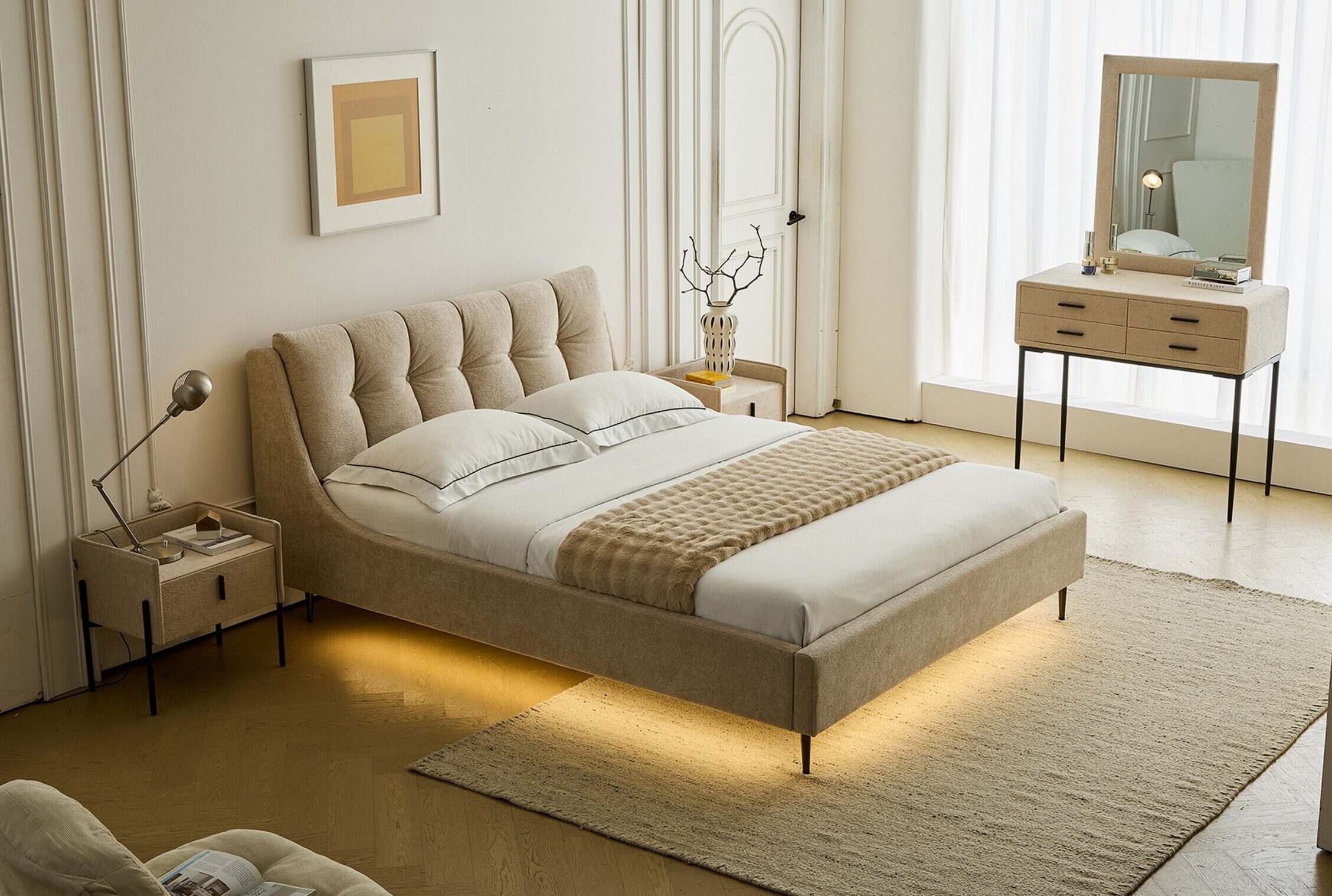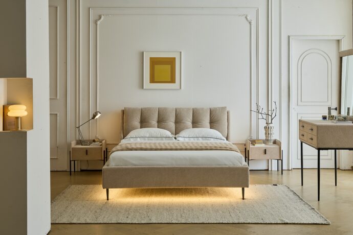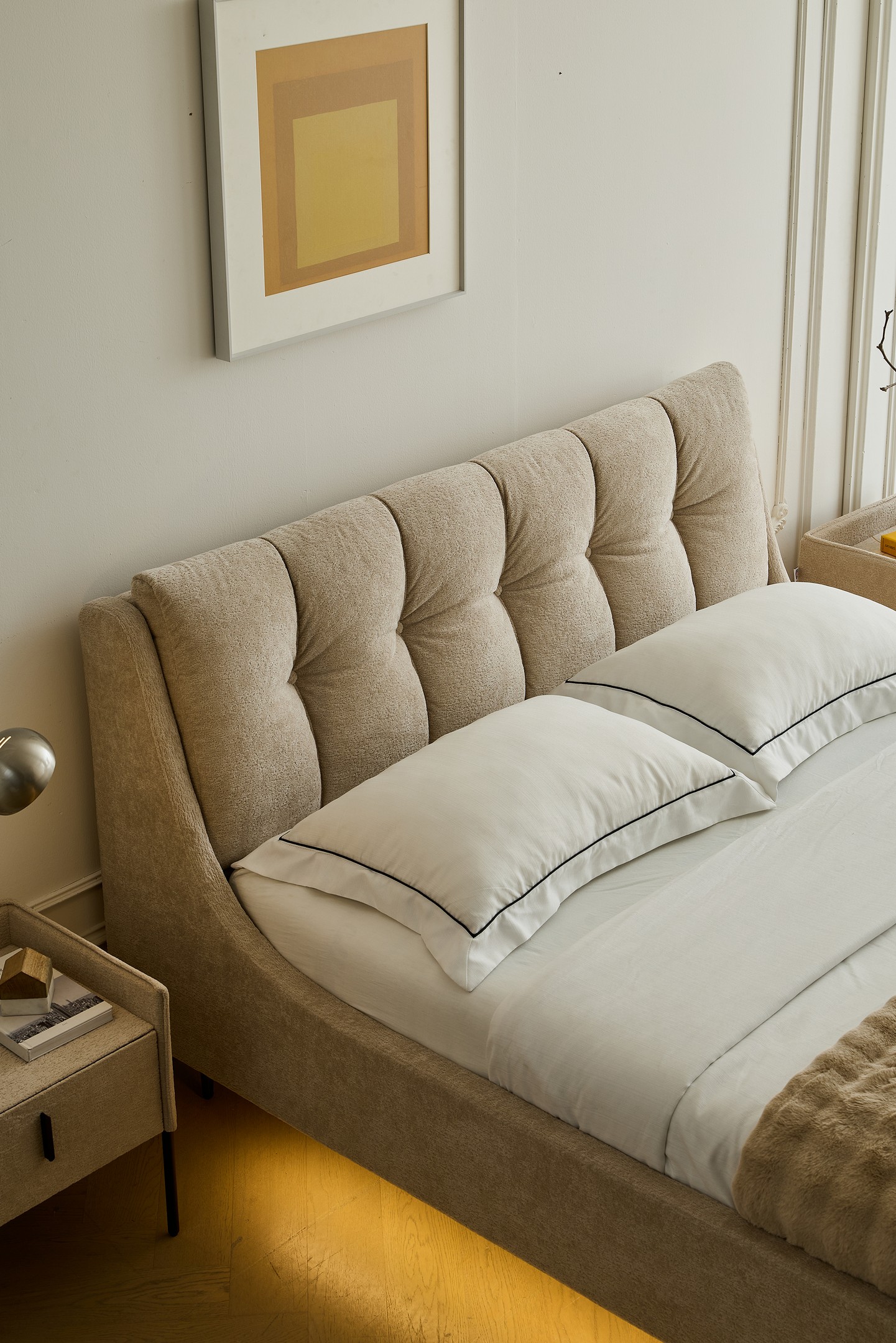מיטה מעוצבת דגם ‘רויאל‘ בגוון סהרה בד טדי במקום 4,900 ₪ רק ב-3,490 ₪ כולל מזרן מתנה !!