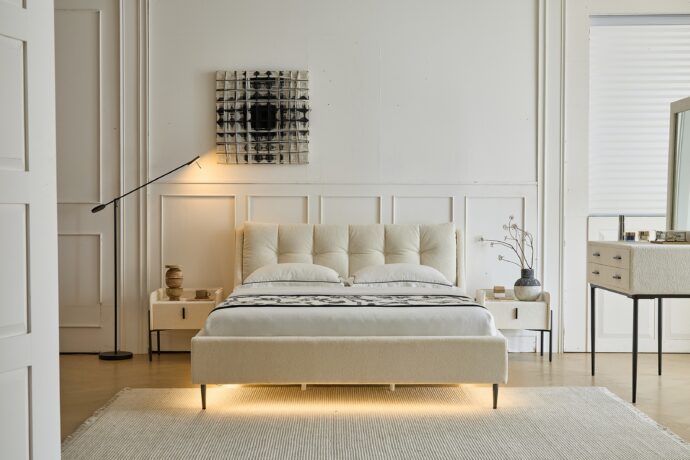 מיטה מעוצבת דגם ‘רויאל‘ בגוון שמנת בד טדי במקום 4,900 ₪ רק ב-3,490 ₪ כולל מזרן מתנה !!
