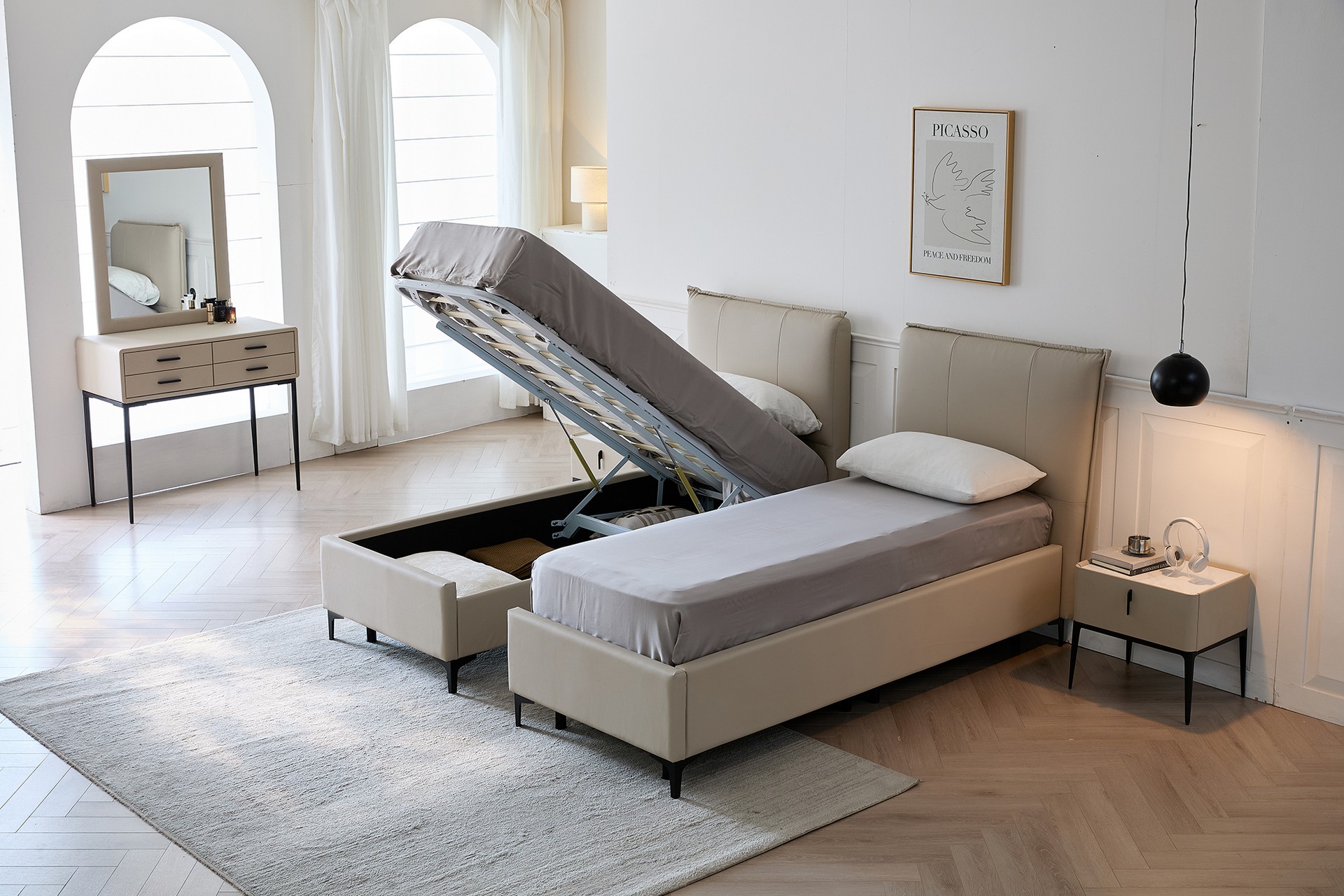 מיטה יהודית מעוצבת דגם ‘מדריד‘ כולל ארגז מצעים, עם מנגנון הפרדה קל ונוח לשימוש, בגוון סהרה במקום 5,790 ש”ח רק 3,490 ש”ח כולל מזרונים מתנה !!!