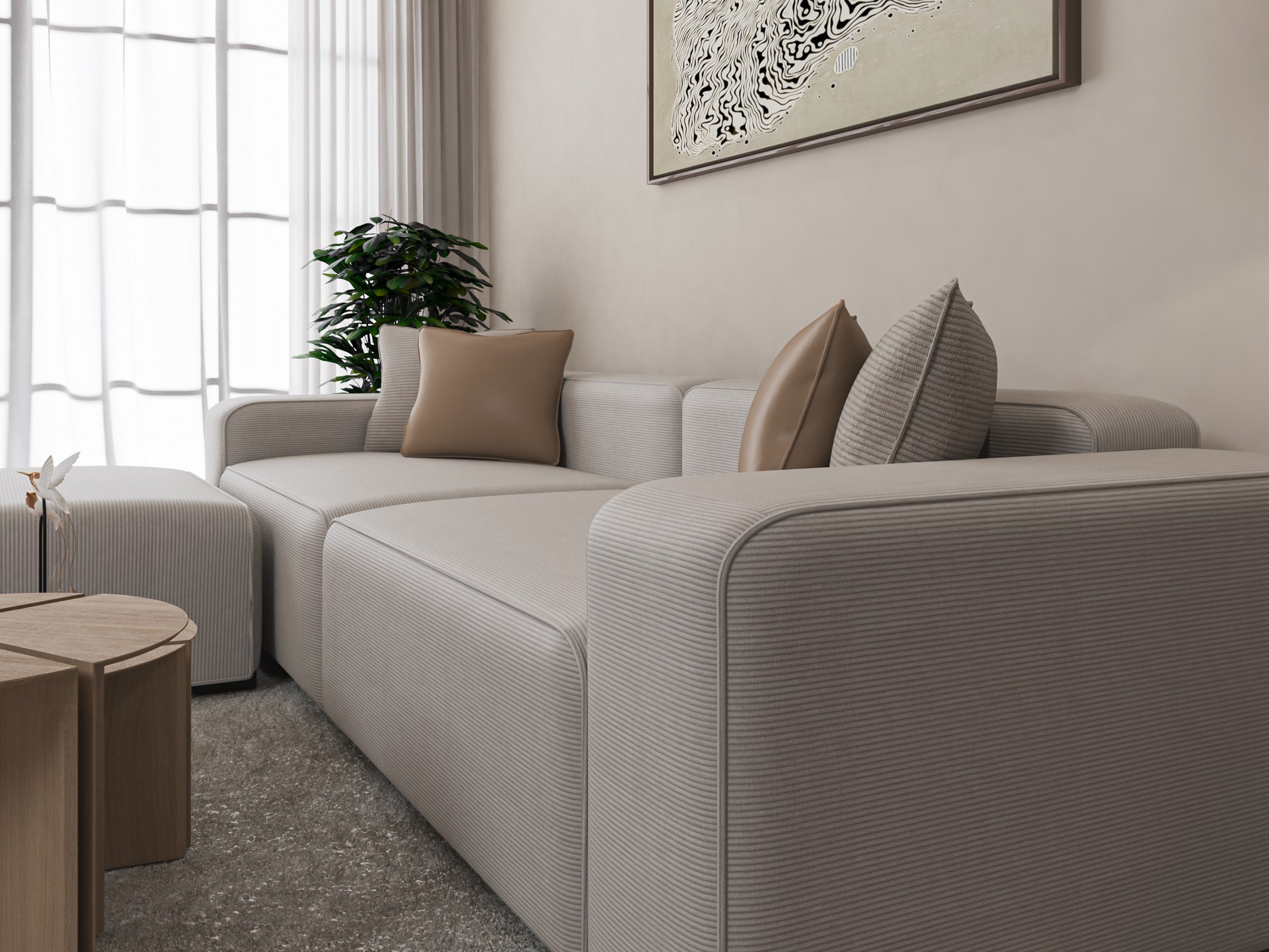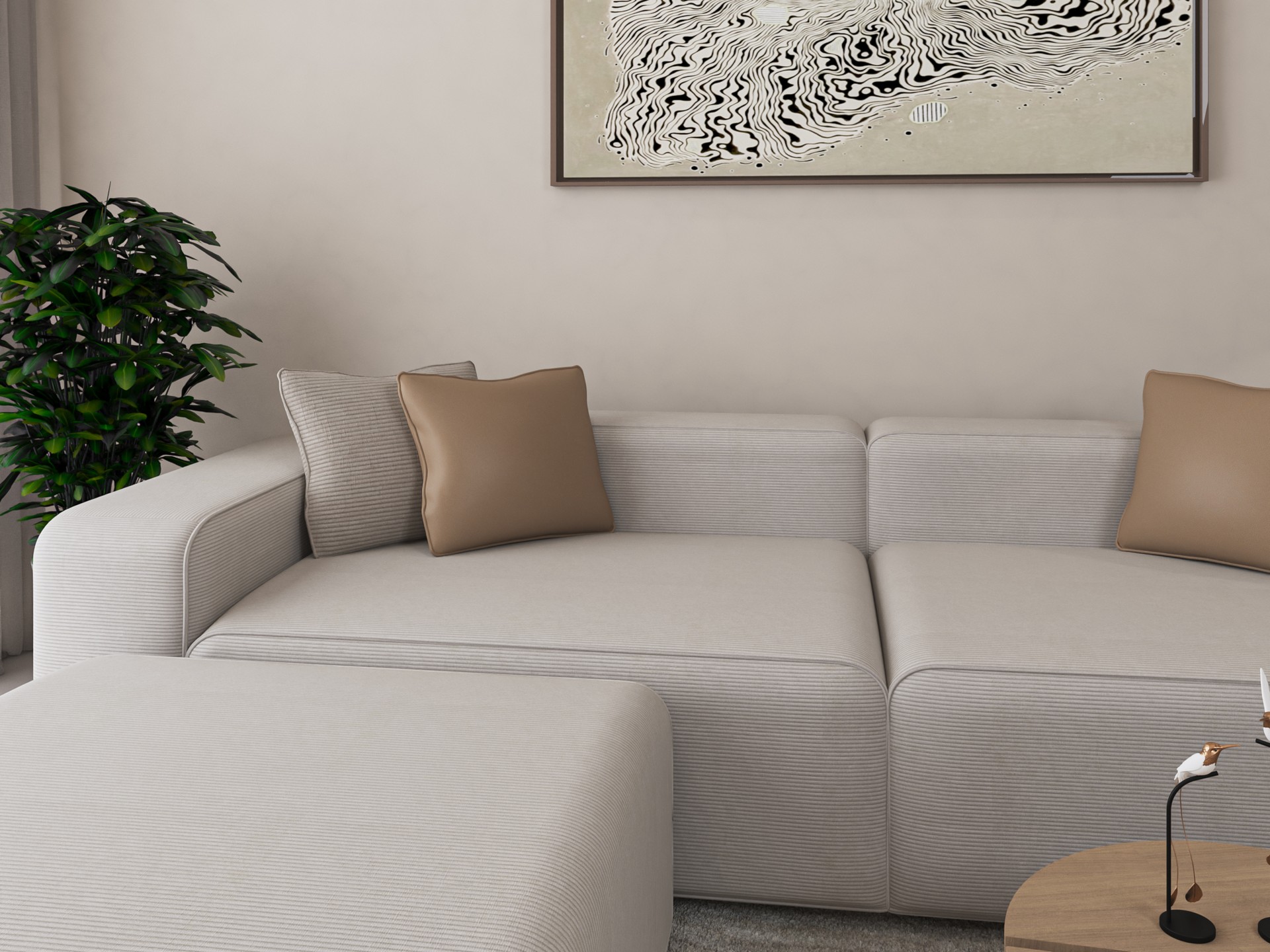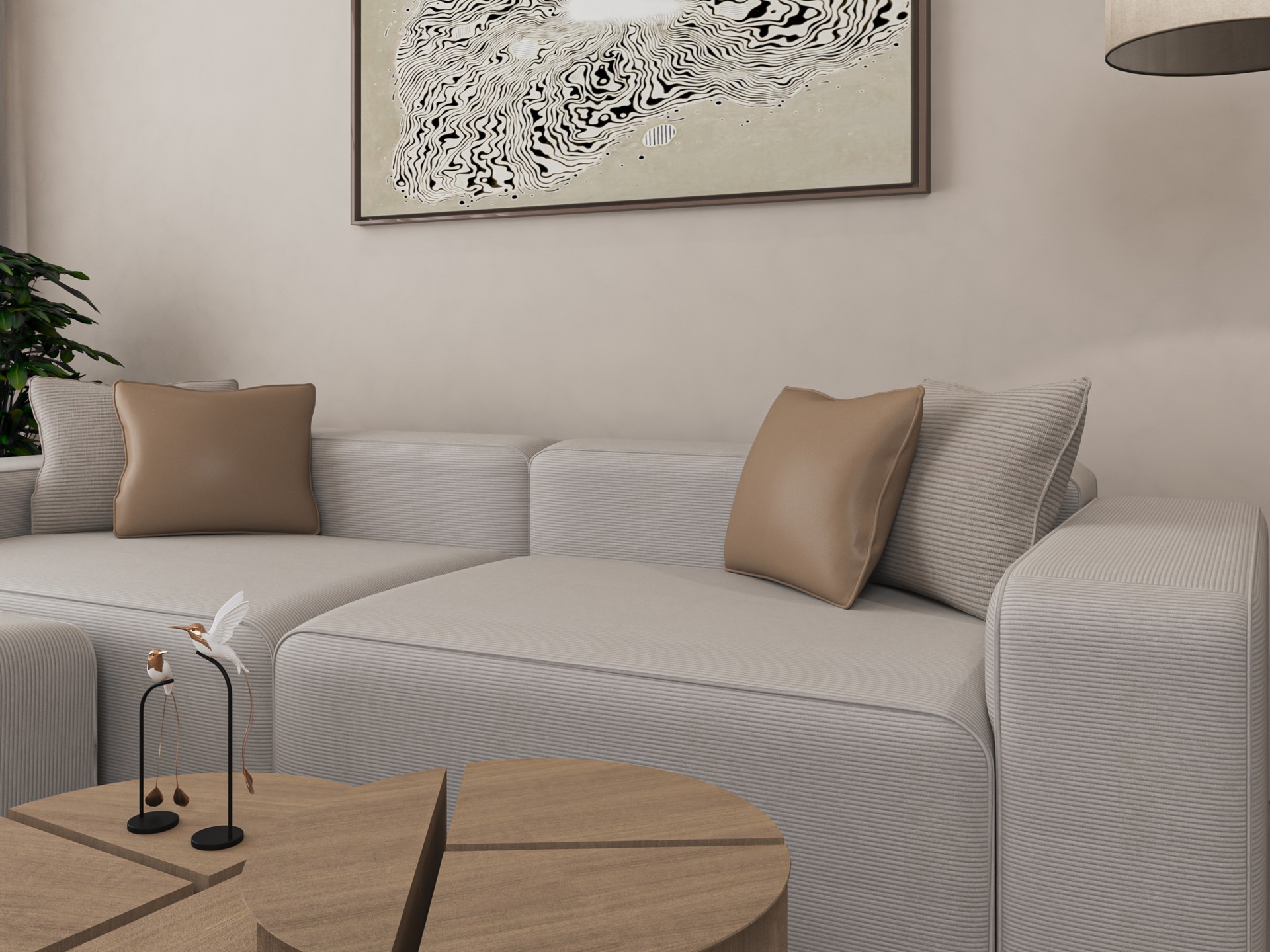 בבד רחיץ ויוקרתי משולב עם כריות בדמוי עור איטלקי בגוון קאמל