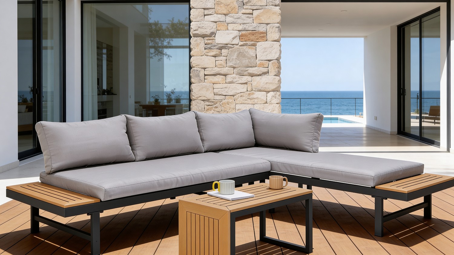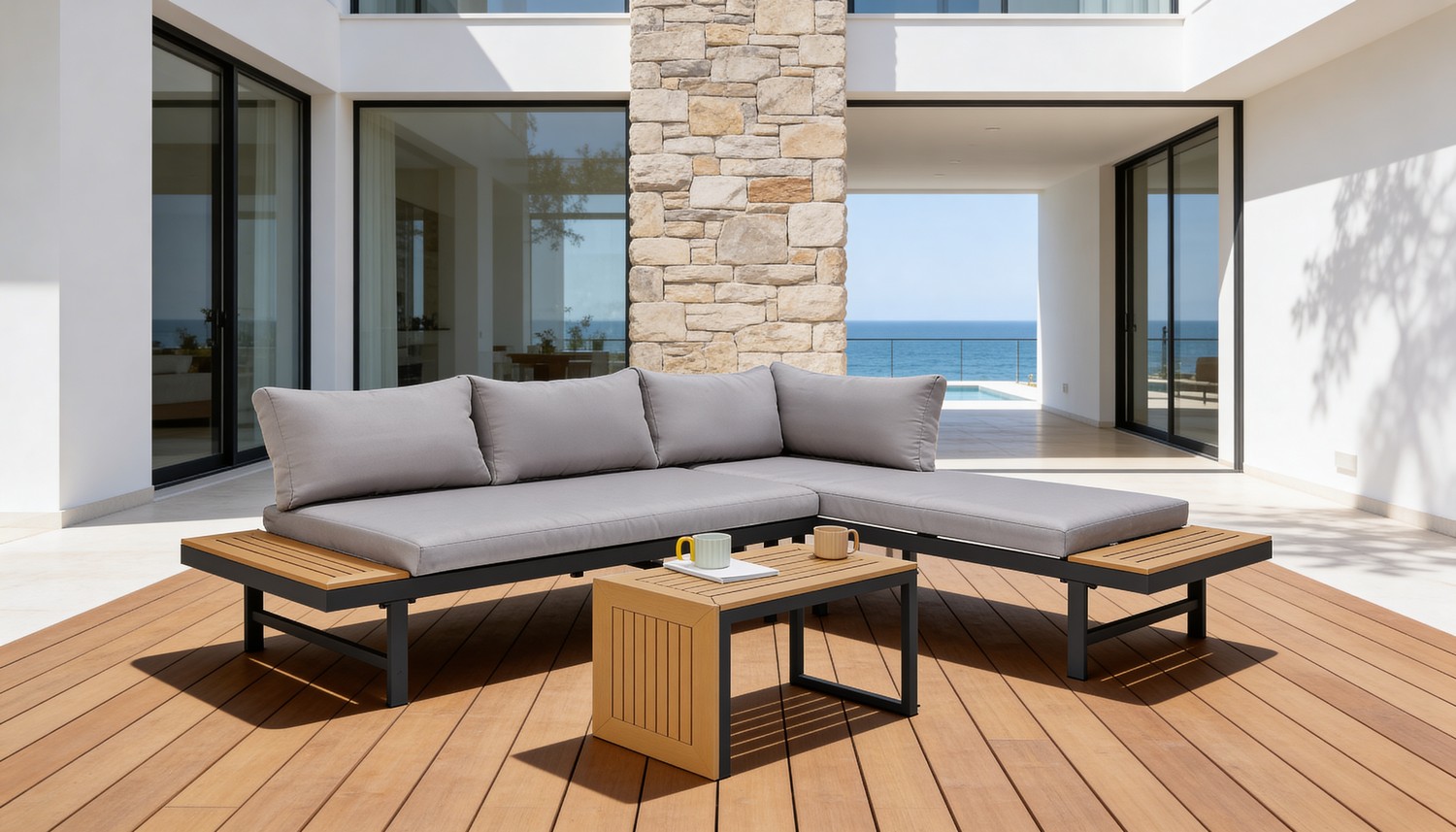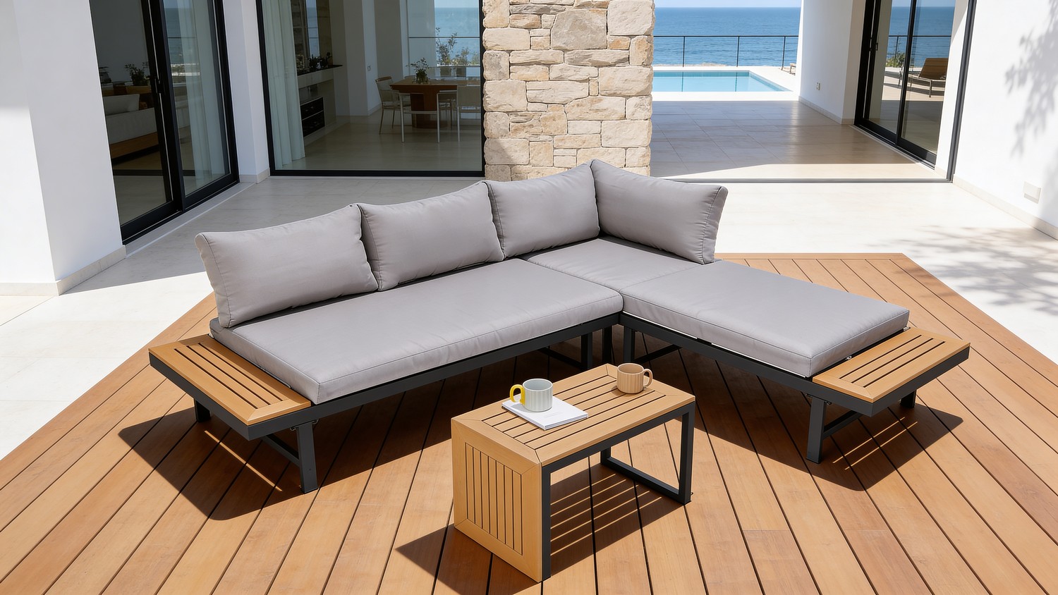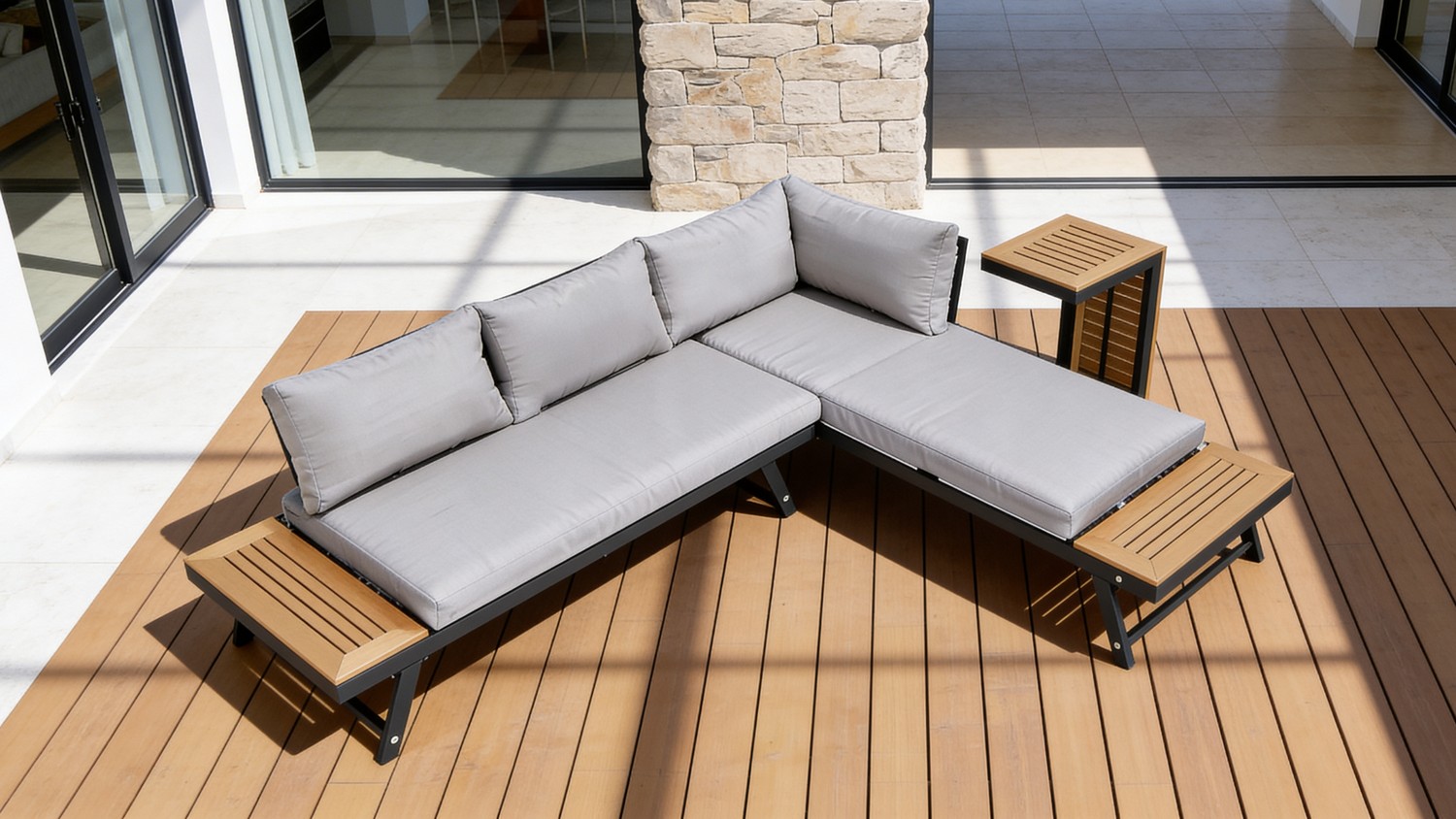 המערכת מתאימה במיוחד לגינה או למרפסת ומביאה שילוב של נוחות, קלילות וסטייל מודרני.