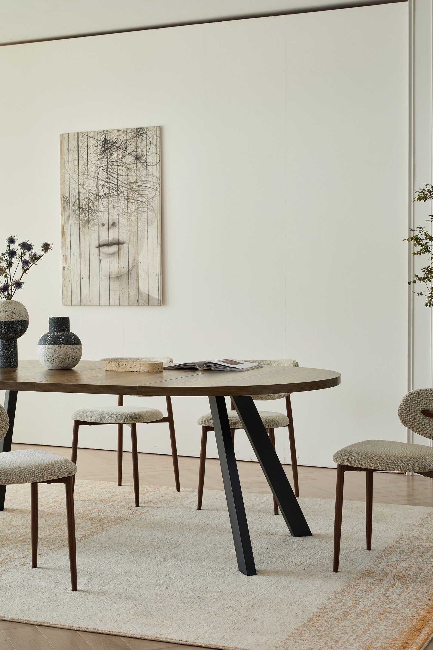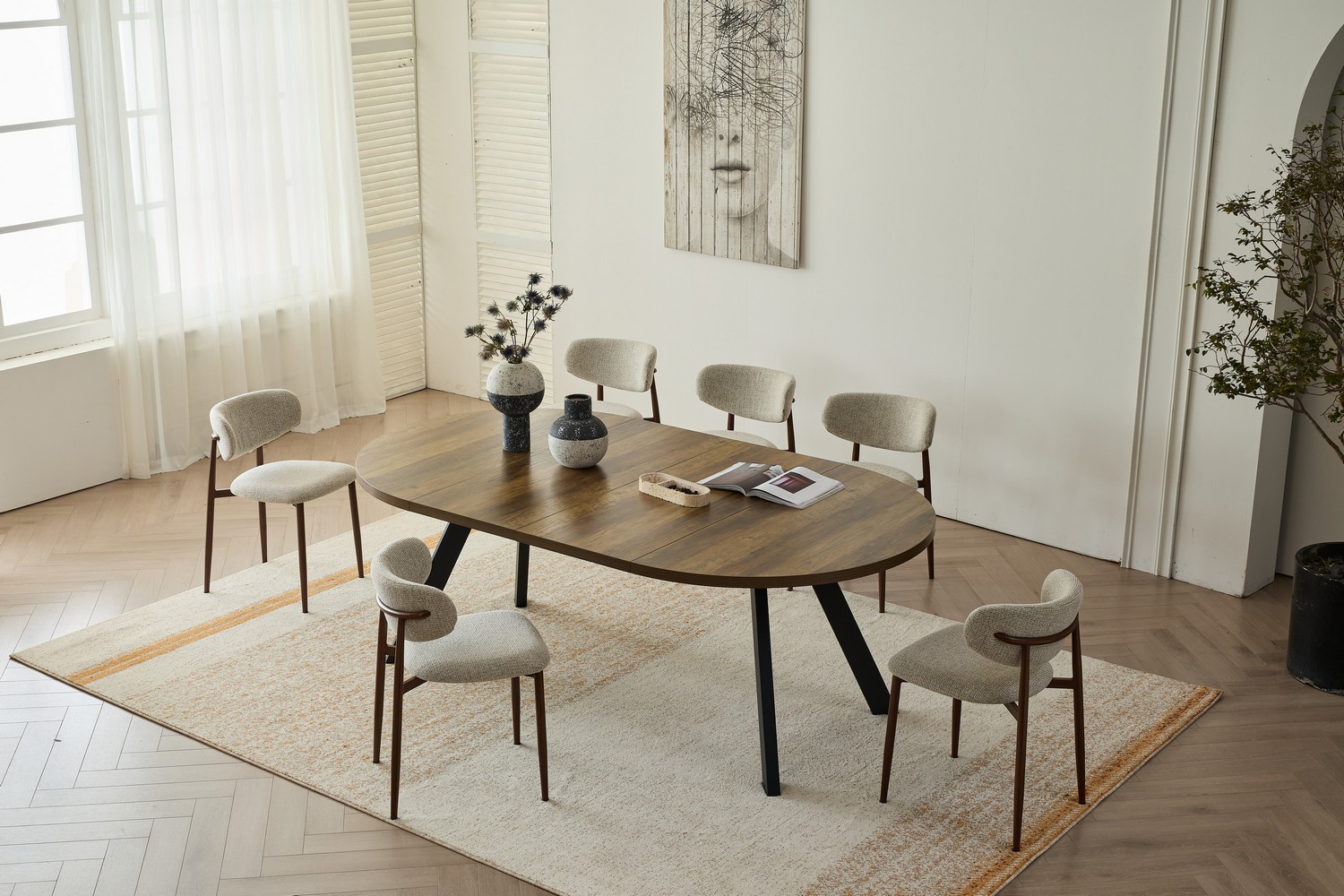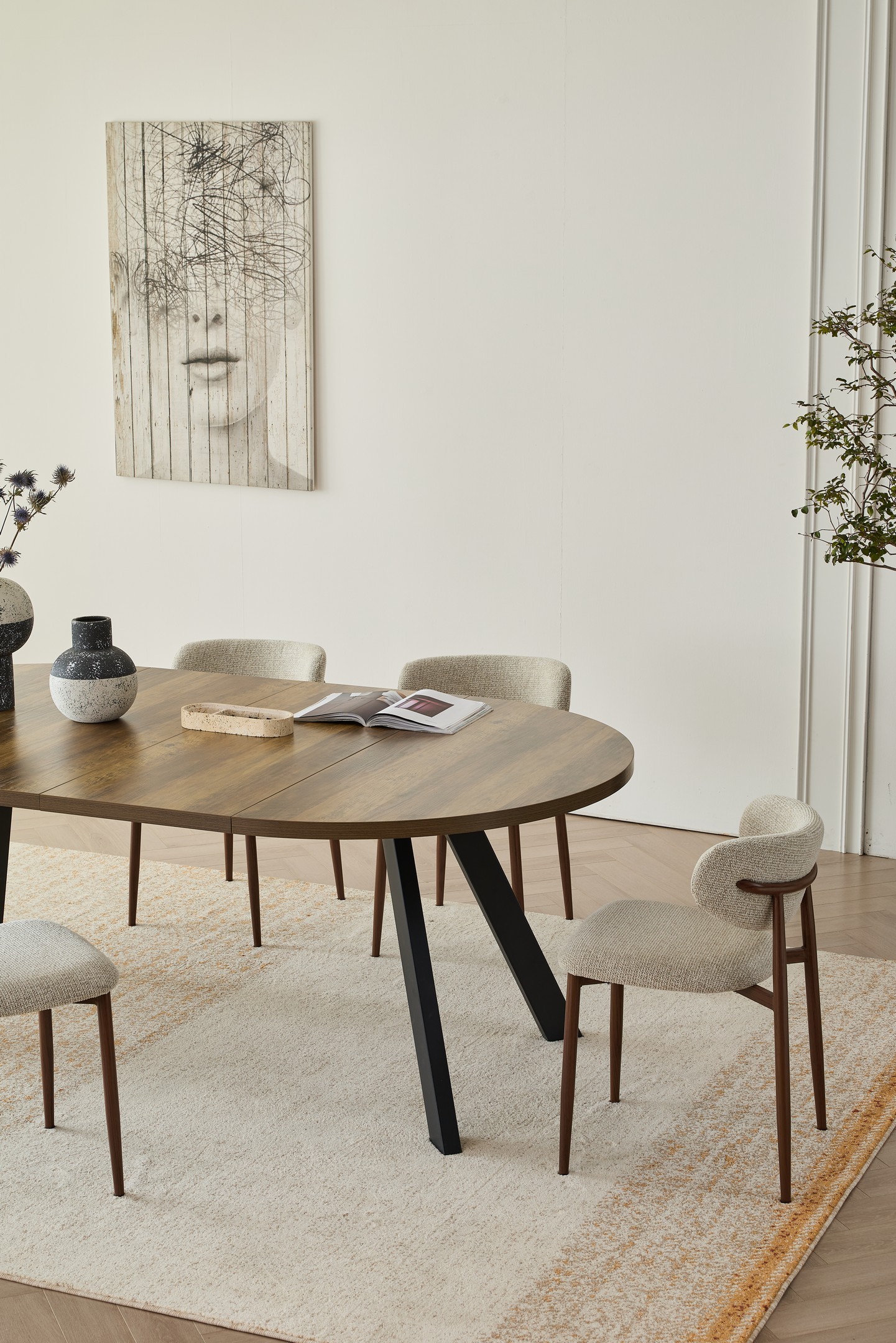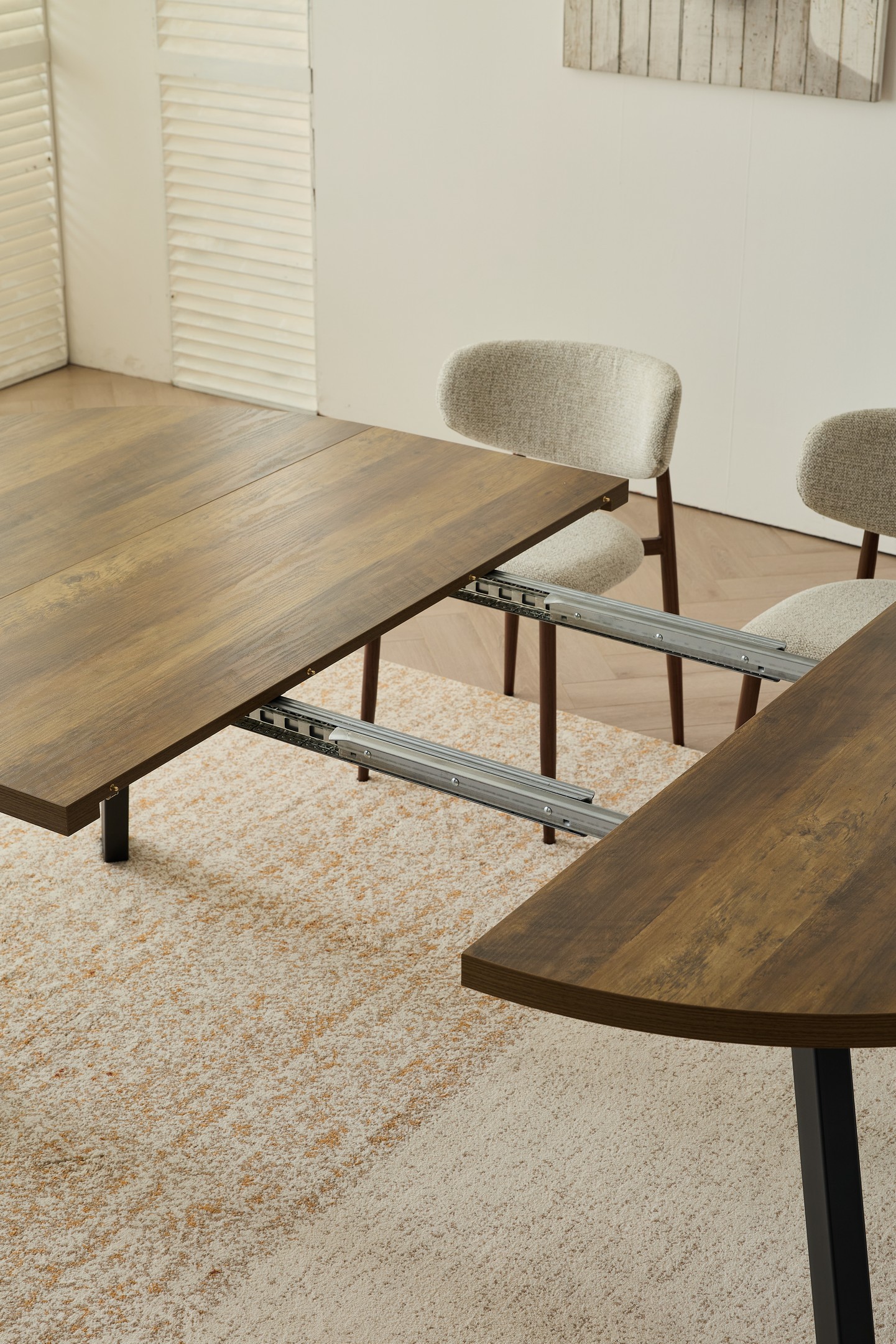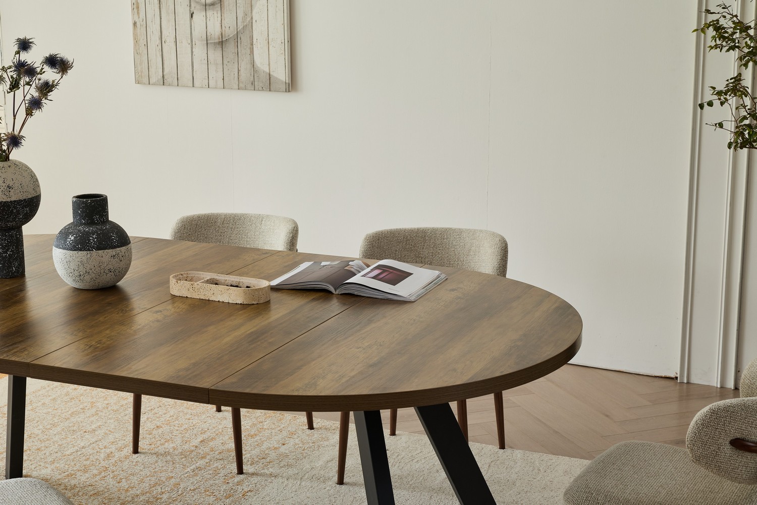 מתאים לאירוח משפחתי ומשלב מראה חם עם קווים נקיים ויציבות גבוהה (נפתח לאורך של כ-210 ס”מ).